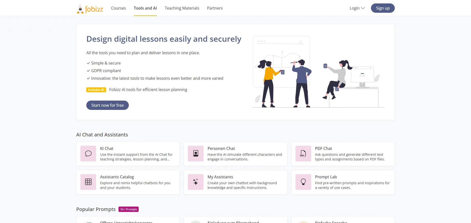 Fobizz es una plataforma integral de enseñanza digital diseñada para enriquecer la experiencia educativa de docentes y estudiantes. Combina herramientas de planificación de clases, creación de contenido multimedia y funciones de inteligencia artificial para generación de texto, conversión de imágenes y voz. Permite compartir y colaborar de forma segura, ofreciendo un entorno adaptable a las necesidades del aula moderna.