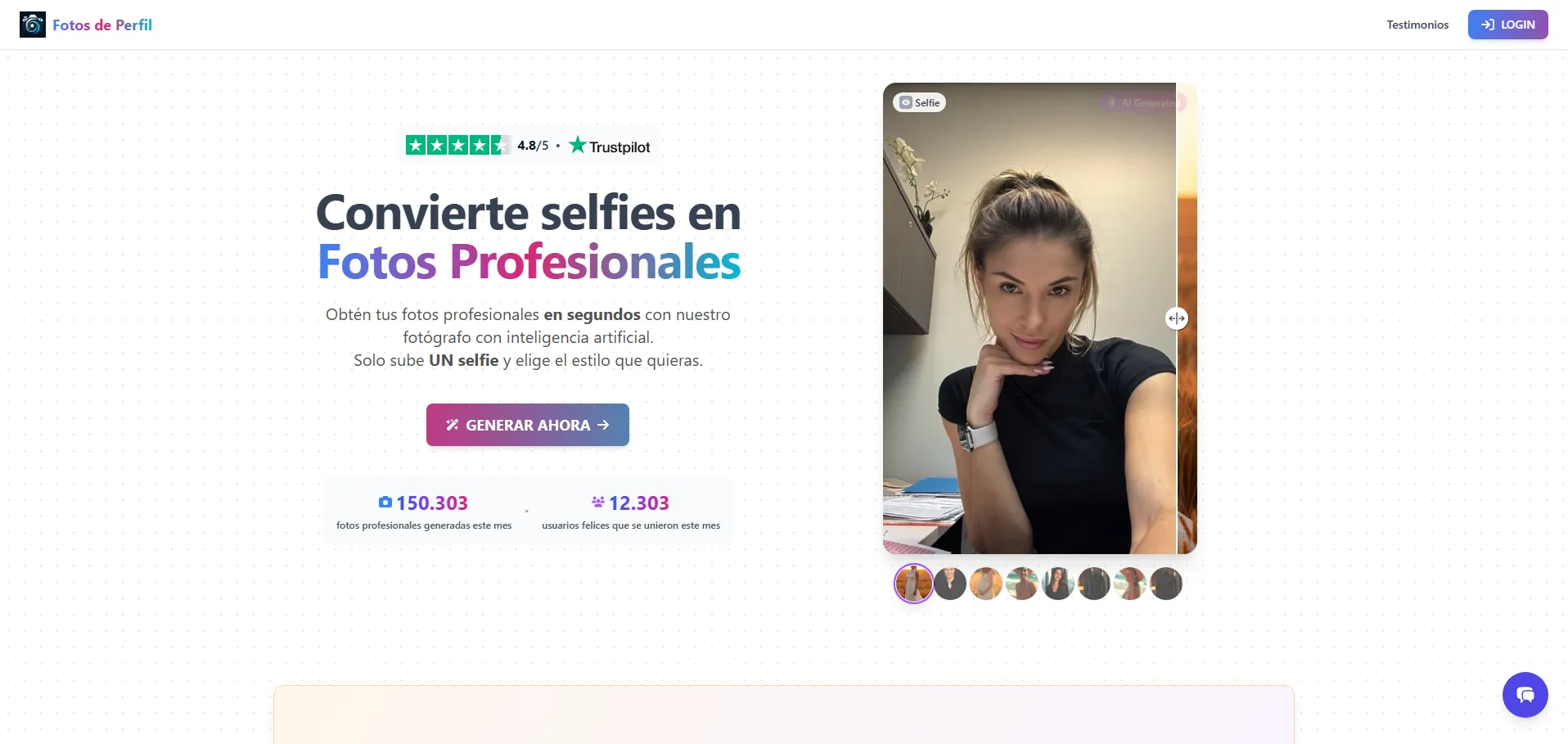 ✅ Creación automática de fotos profesionales a partir de una sola selfie.