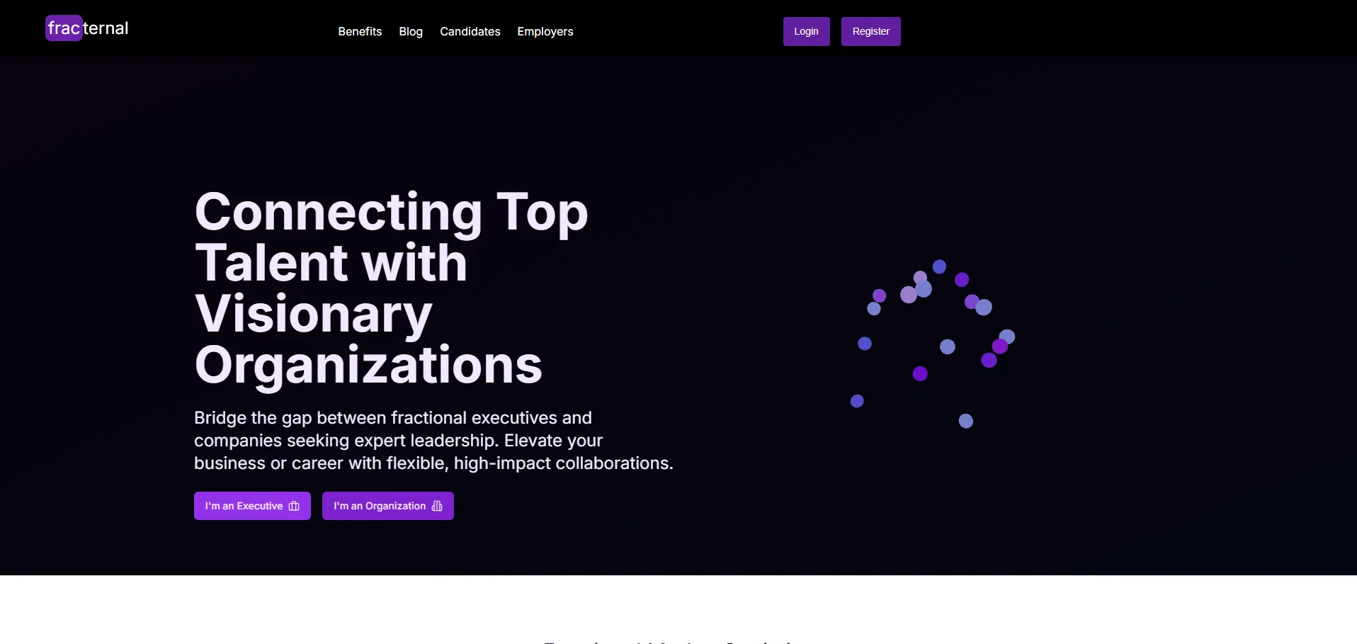 Fracternal es una plataforma de liderazgo fraccional que conecta ejecutivos experimentados con organizaciones que buscan talento temporal altamente especializado. Mediante reclutamiento asistido por IA, Fracternal identifica candidatos idóneos según requisitos de puesto y sector, generando perfiles personalizados para mejorar la visibilidad profesional. Las empresas obtienen acceso a experiencia ejecutiva sin compromisos a largo plazo, optimizando recursos con contratos a corto plazo y evaluaciones de liderazgo alineadas a sus objetivos.