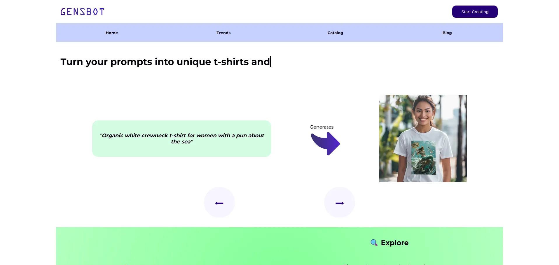 Gensbot es una herramienta de inteligencia artificial que genera al instante productos personalizados basados en tus preferencias. Solo necesitas iniciar sesión, pedir lo que desees y Gensbot elaborará un catálogo a medida para que elijas. Ya sea un regalo único, artículos de marca o la última tendencia, esta plataforma elimina el estrés de las compras online ofreciendo diseños sostenibles producidos localmente para reducir la huella de carbono. Disfruta de una entrega confiable y de calidad excepcional, sabiendo que cada pedido se maneja con el máximo cuidado.