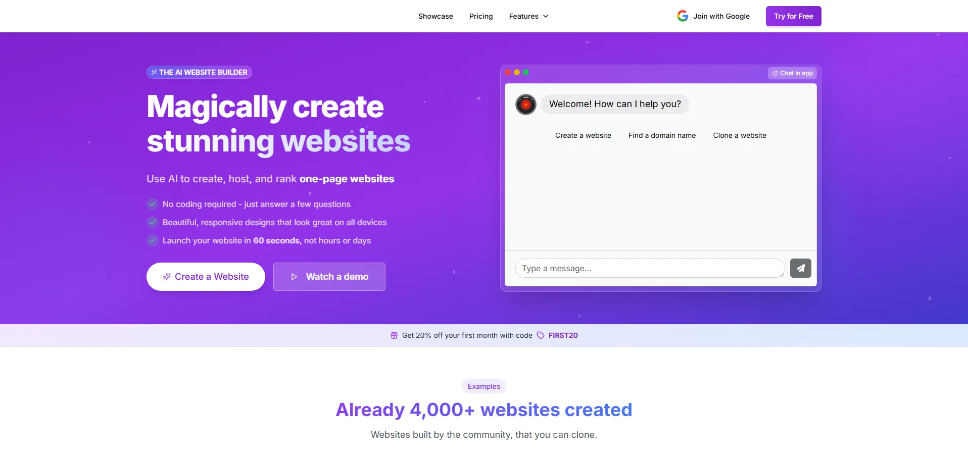 GetSite es un creador de micrositios de una sola página potenciado por inteligencia artificial, diseñado para que pequeñas empresas y consultores lancen una presencia online profesional en minutos. A través de un asistente interactivo, genera el diseño, el hosting, el registro de dominio y la configuración SEO básica sin necesidad de conocimientos de programación. Incluye certificado SSL automático, análisis de tráfico esenciales y un editor de código intuitivo para personalizar HTML, CSS y JavaScript con total flexibilidad.