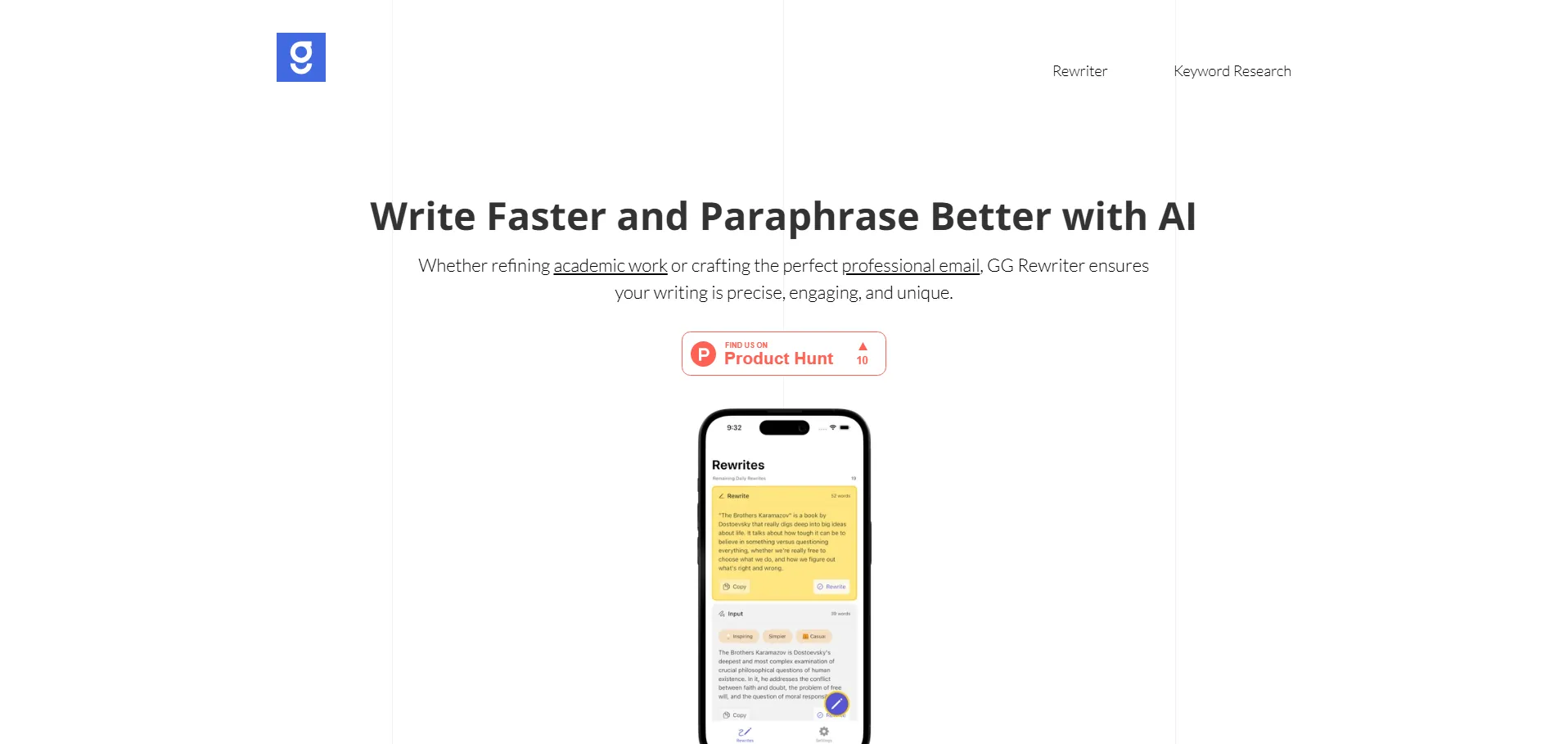 Descarga la app móvil para iOS y Android o accede a la versión web en el sitio oficial de GG Rewriter.