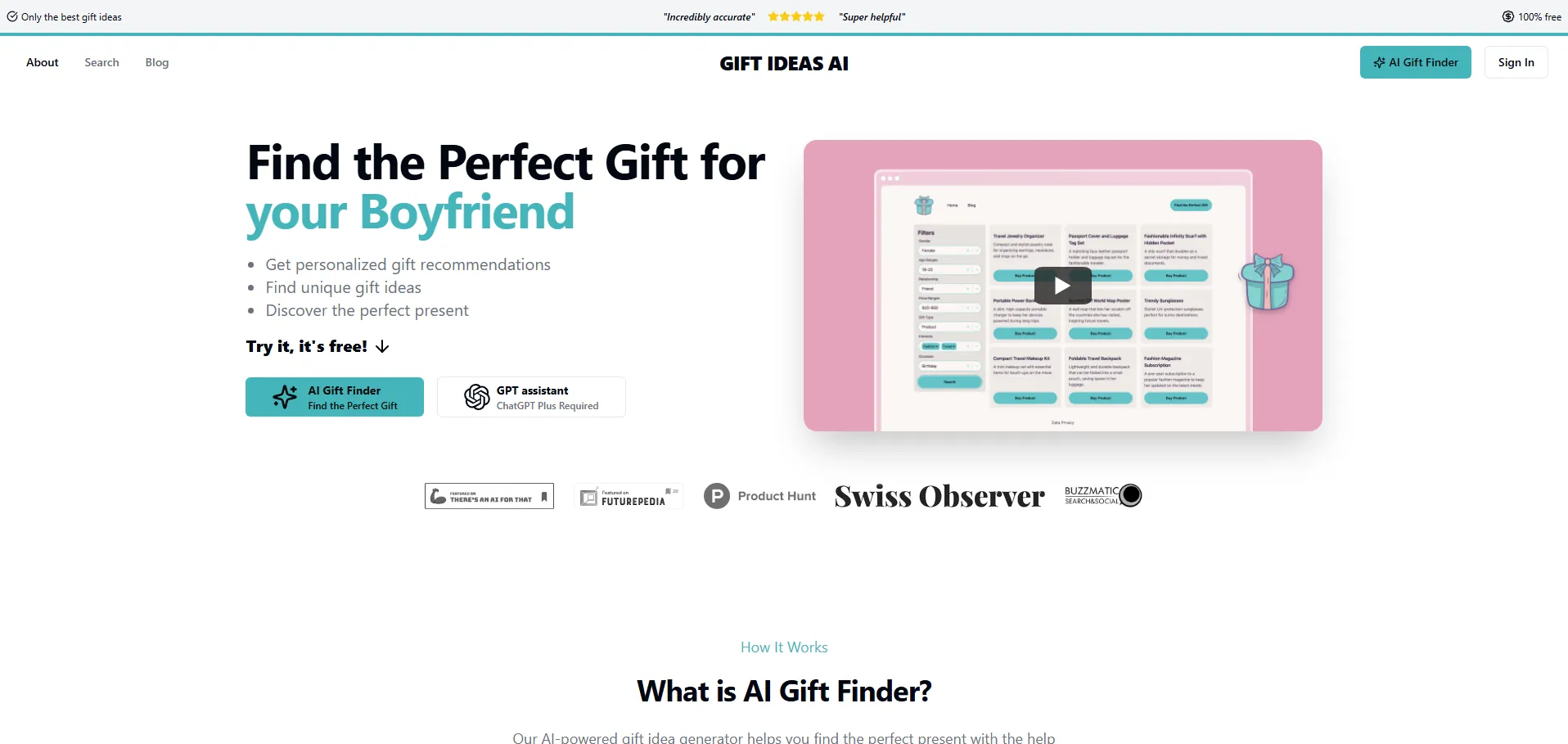 Gift Ideas AI es un buscador de regalos impulsado por inteligencia artificial que elimina el estrés de encontrar el detalle perfecto. Su motor de recomendaciones personalizadas analiza intereses, edad, género y ocasiones especiales para ofrecer ideas de regalo adaptadas a cada perfil. Con una amplia selección de opciones económicas y la integración con plataformas de comercio electrónico de renombre, Gift Ideas AI garantiza una experiencia de compra segura y fluida. Además, aprende de tu historial de regalos y envía recordatorios oportunos para que nunca olvides una fecha importante.