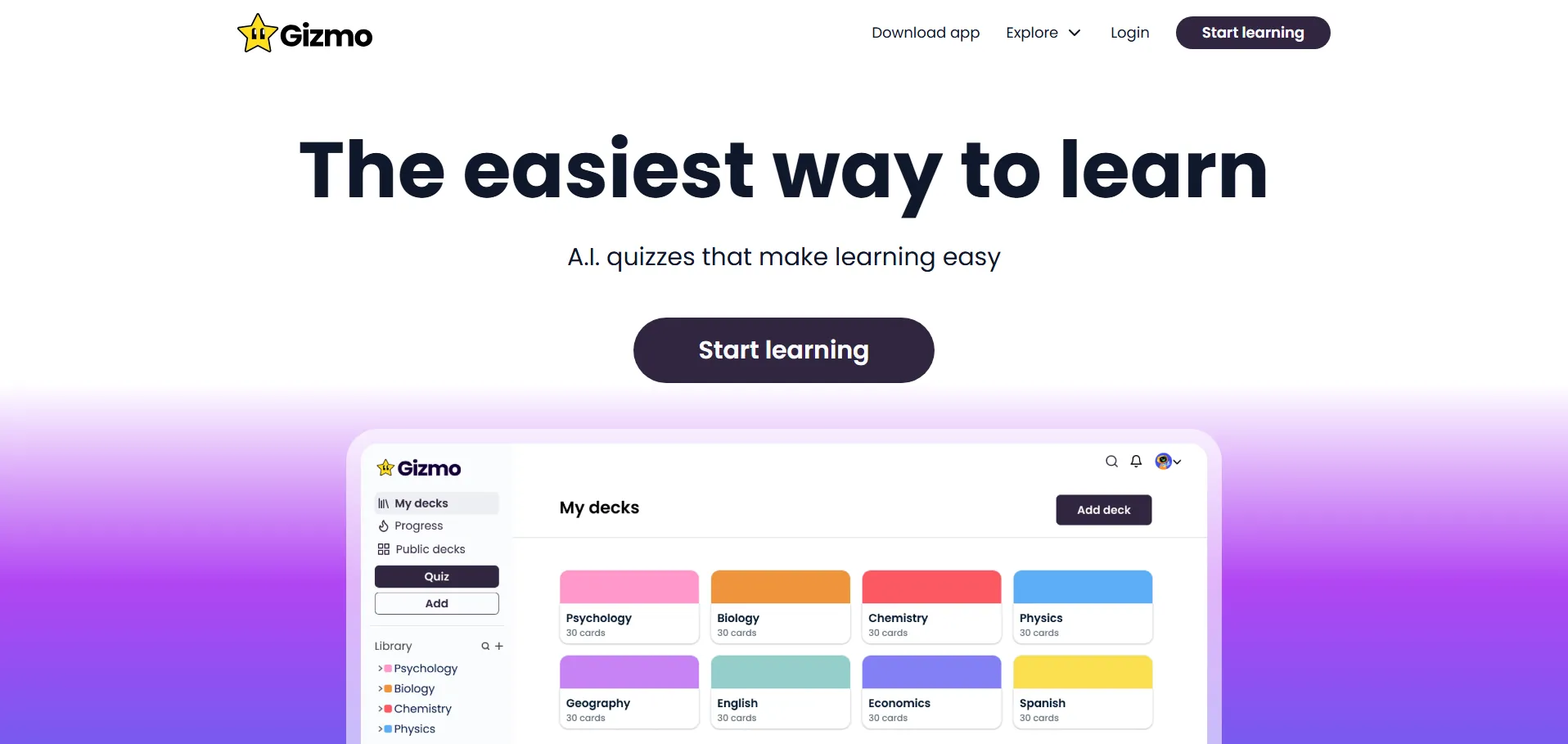 Gizmo es una herramienta de inteligencia artificial diseñada para transformar el aprendizaje en una experiencia interactiva y divertida. Con generadores de cuestionarios y tarjetas de memoria impulsados por IA, funciones de repetición espaciada y planificación de estudios, Gizmo facilita la adquisición de conocimientos y mejora la retención a largo plazo. Utilizada y recomendada por exalumnos de Cambridge, esta plataforma cubre una amplia variedad de materias y niveles educativos, adaptándose tanto a estudiantes que preparan exámenes como a quienes desean reforzar sus calificaciones de forma dinámica.