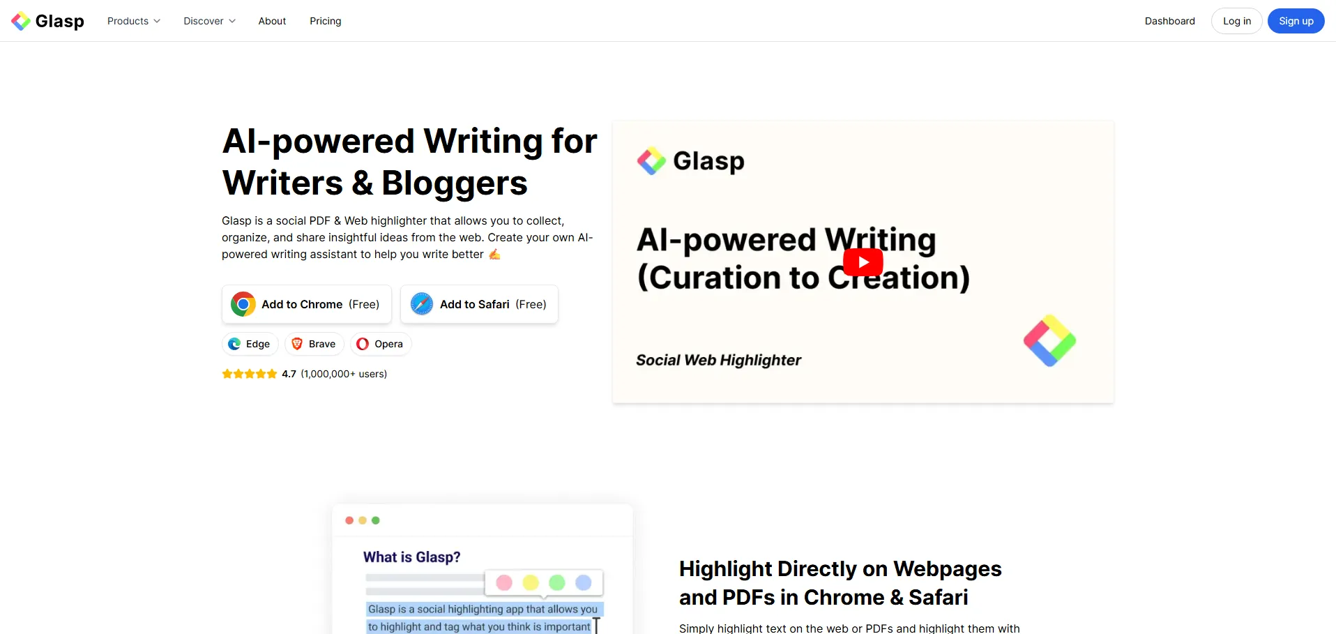 Glasp es una aplicación web diseñada para enriquecer la experiencia de lectura en línea a través de herramientas de resaltado, toma de notas y organización de contenidos. Permite a los usuarios seleccionar, clasificar y gestionar materiales de investigación y artículos, así como compartir sus ideas en una comunidad social donde pueden descubrir y seguir a otros lectores con intereses similares. Además, cuenta con extensiones para navegadores que facilitan la captura de información directamente desde páginas web.