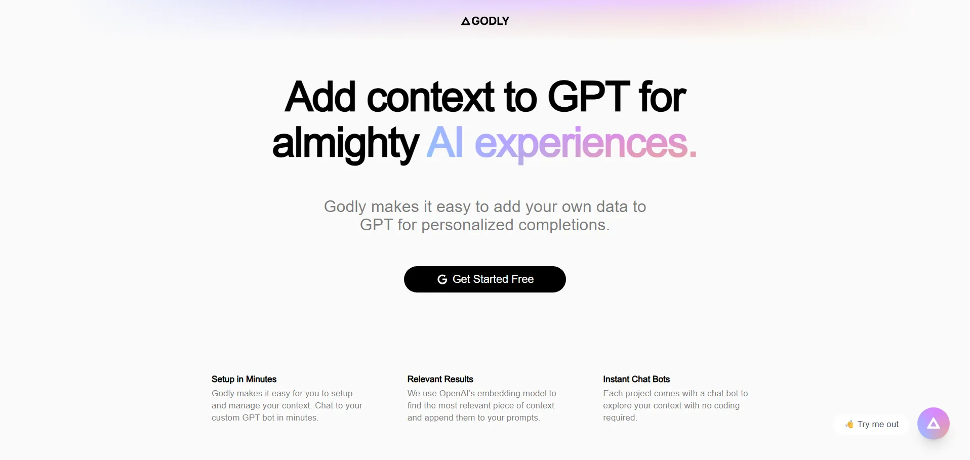 Godly es una plataforma de inteligencia artificial que proporciona contexto instantáneo para GPT-3, permitiendo a los usuarios añadir datos, gestionar escenarios conversacionales y completar tareas con mayor relevancia. Su configuración gratuita, lista en minutos, incluye un chatbot personalizado y un SDK intuitivo para integrar finalizaciones de GPT-3 sin necesidad de código, con futura compatibilidad para múltiples modelos LLM en desarrollo.