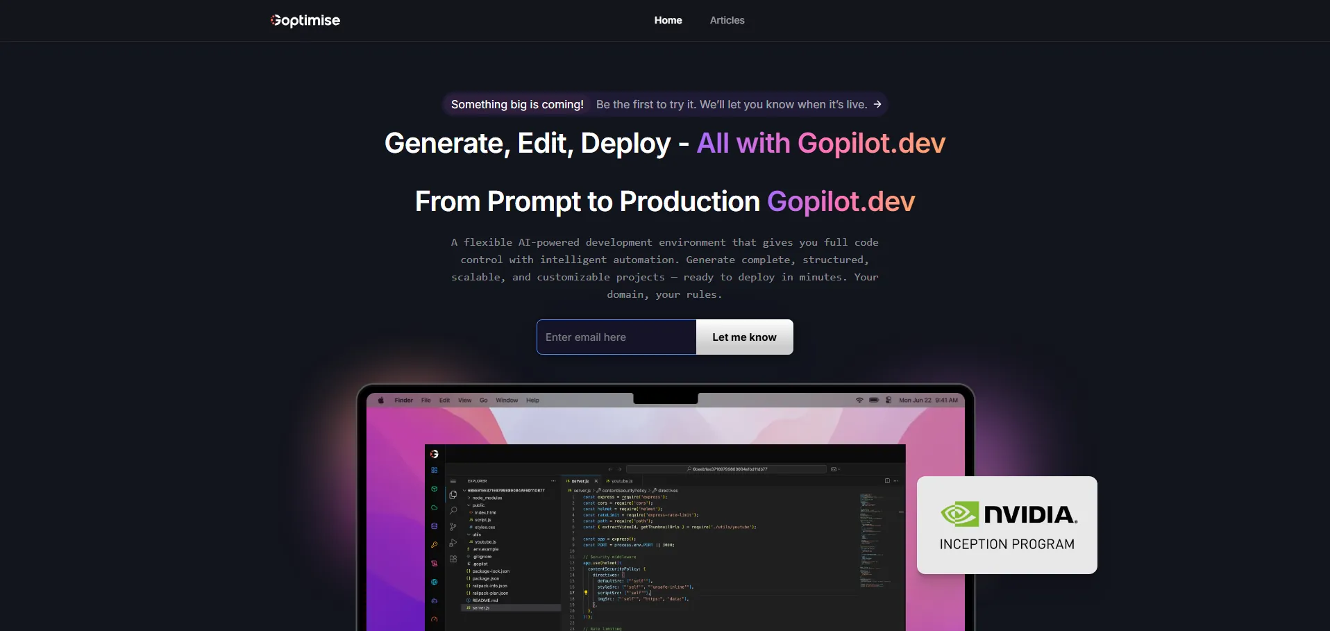 Goptimise Beta es un generador de backend escalable sin código impulsado por inteligencia artificial. Permite crear, gestionar e implementar infraestructuras de backend mediante una interfaz visual intuitiva. Aprovecha sugerencias inteligentes para el diseño de API, genera automáticamente bases de datos y organiza flujos de trabajo personalizados en espacios colaborativos, acelerando los ciclos de desarrollo y mejorando la productividad de equipos técnicos.