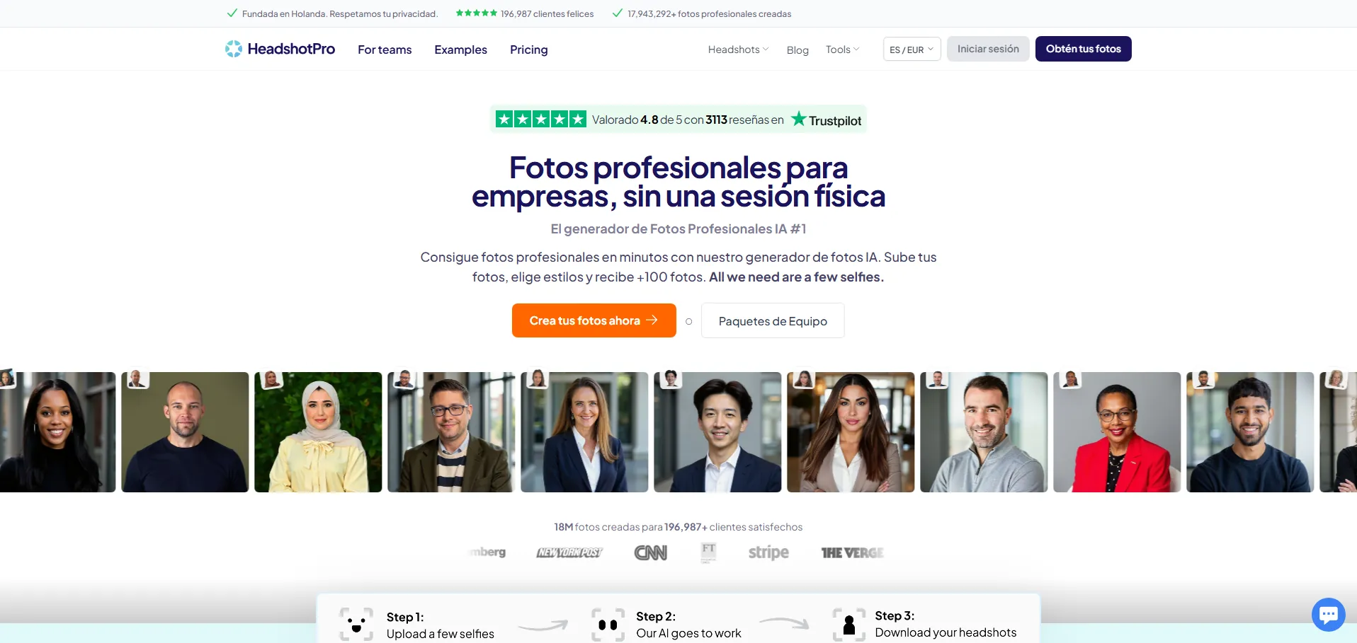 Headshotpro es una herramienta de generación de retratos profesionales impulsada por inteligencia artificial, diseñada para crear imágenes de alta fidelidad sin necesidad de sesiones fotográficas presenciales. Con un simple proceso de carga de fotos y selección de estilo, los usuarios reciben más de 120 retratos realistas en menos de dos horas.