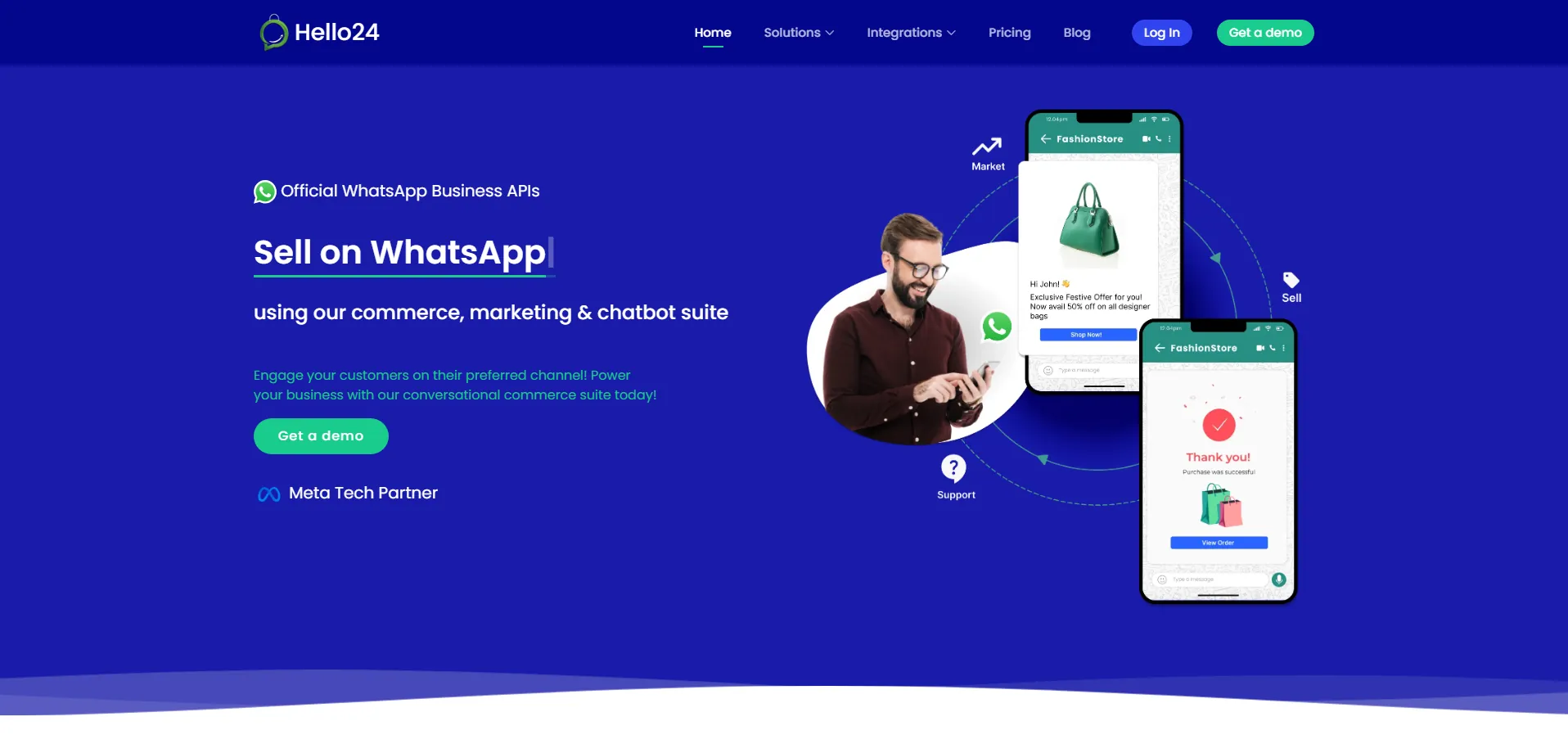 Hello24ai es un software de chatbot para WhatsApp y una solución de automatización de marketing enfocada en el comercio conversacional. Permite a las empresas gestionar pedidos, pagos y entregas directamente desde WhatsApp, optimizando la comunicación con los clientes mediante IA conversacional. Con integraciones nativas, análisis de datos y recuperación de carritos abandonados, Hello24ai mejora la experiencia de compra y aumenta las conversiones.