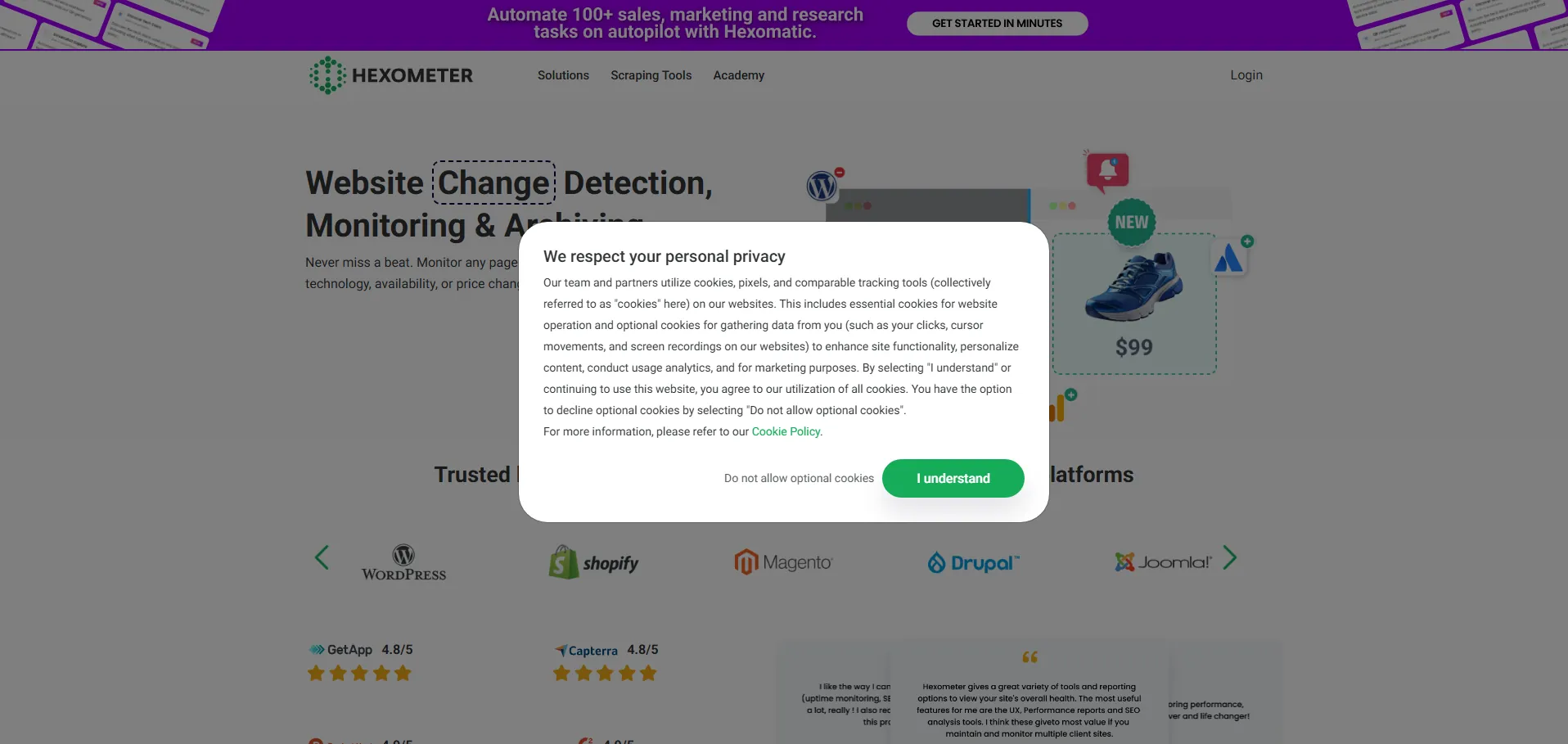Hexometer es una plataforma de monitorización web impulsada por inteligencia artificial que analiza tu sitio 24/7 en seis áreas críticas: disponibilidad, velocidad de carga, enlaces, ortografía, SEO y seguridad. Genera alertas instantáneas vía correo electrónico, SMS, Slack, Telegram y Trello. Diseñada para agencias y equipos técnicos, ofrece un panel multicliente para gestionar proyectos, programar auditorías de marca blanca y evaluar el impacto de cambios en el rendimiento a lo largo del tiempo.