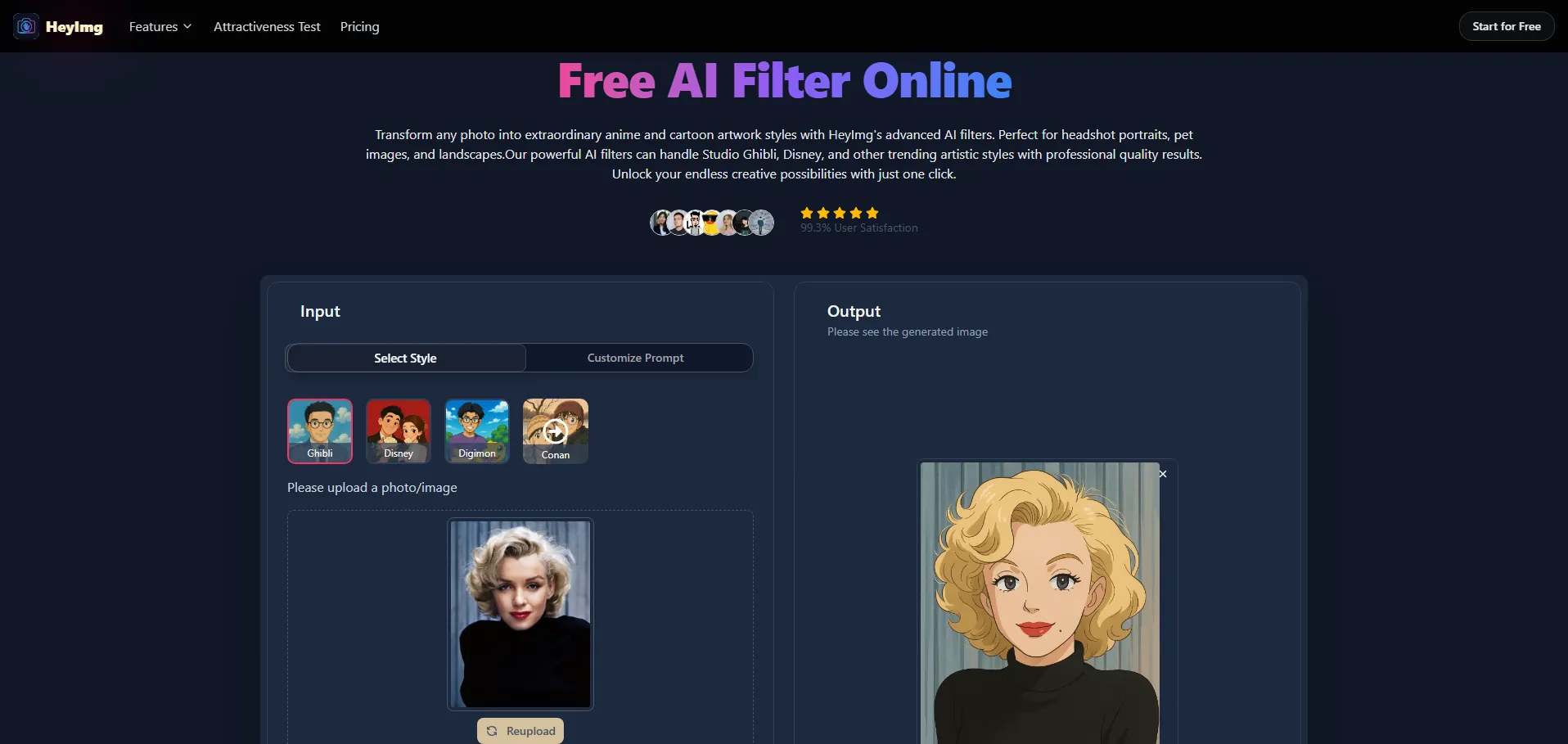 Hey Img es una plataforma de generación y transformación de imágenes potenciada por inteligencia artificial. Permite convertir fotos en ilustraciones artísticas de alta resolución aplicando estilos populares como anime, dibujos animados, Studio Ghibli y Disney. Con una interfaz intuitiva, no requiere experiencia técnica y ofrece resultados listos para uso comercial en segundos.