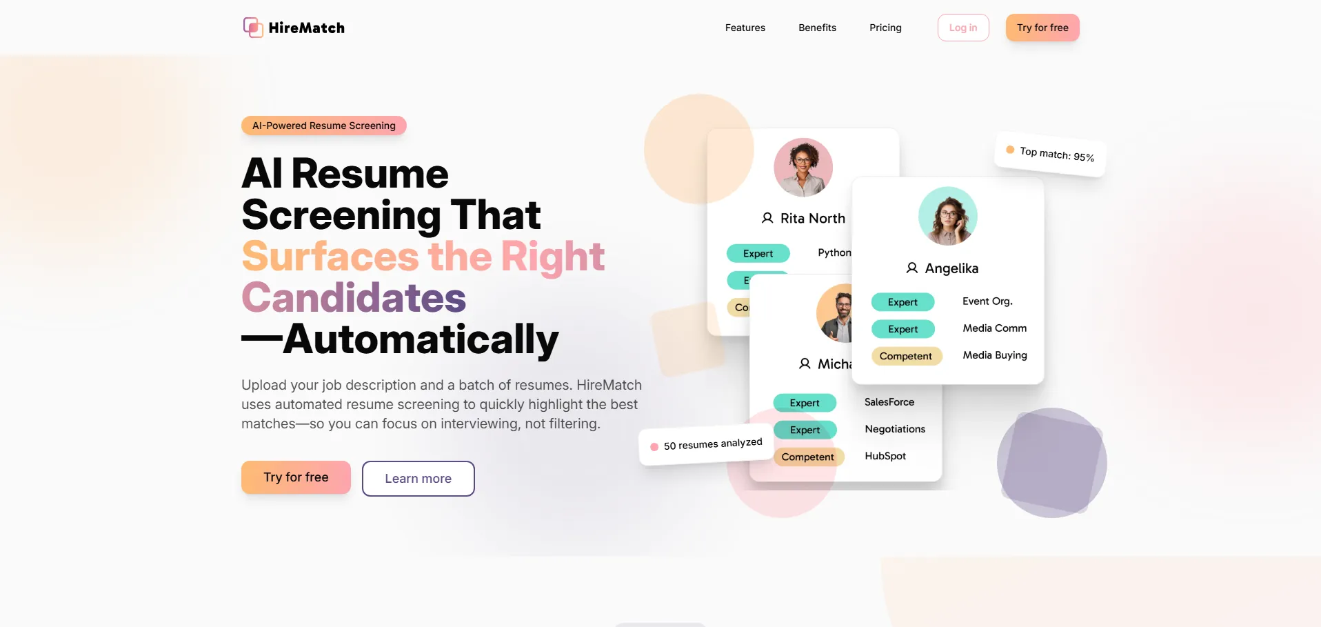 HireMatch es una plataforma de filtrado de currículums impulsada por inteligencia artificial, diseñada para agilizar el proceso de selección de personal. Aprovecha algoritmos de procesamiento del lenguaje natural para analizar y clasificar candidaturas, garantizando que los reclutadores identifiquen a los perfiles más relevantes sin perder tiempo en revisiones manuales. Compatible con cualquier sector y puesto, HireMatch se adapta tanto a equipos de RR. HH. como a profesionales freelance, ofreciendo resultados rápidos, precisos y escalables.