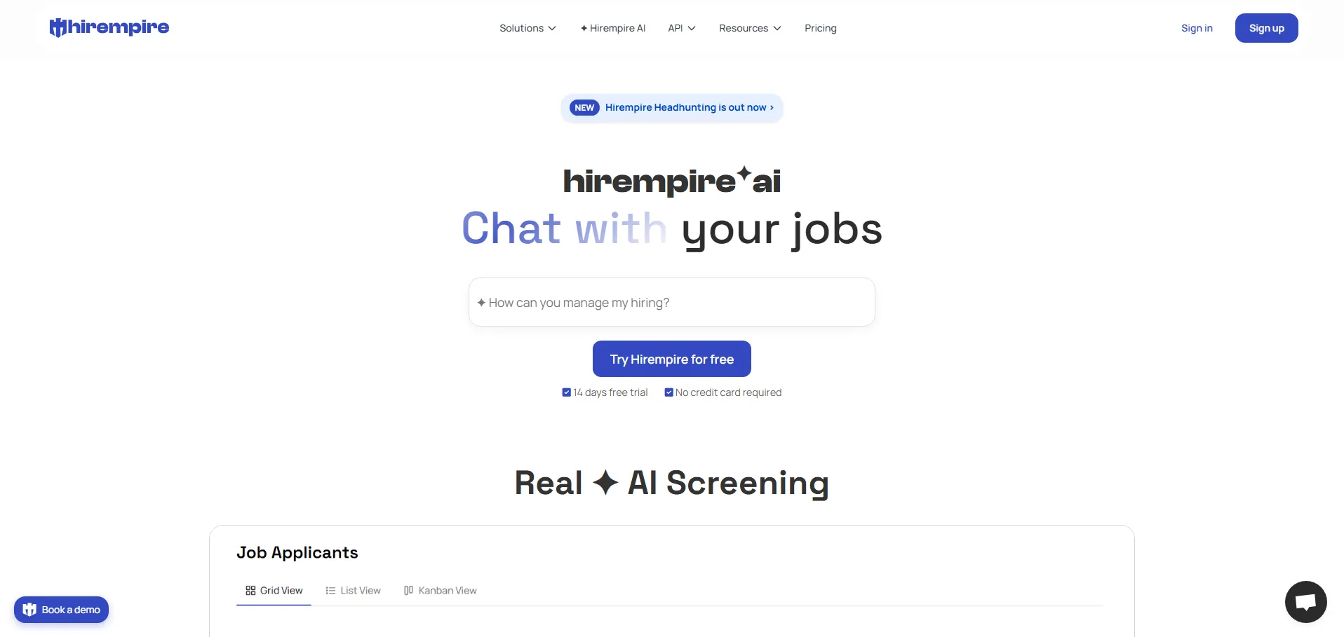 Hirempire es una plataforma integral de gestión de reclutamiento y applicant tracking system (ATS) que centraliza todo el flujo de trabajo de contratación para empresas y organizaciones de cualquier tamaño. Equipada con seguimiento automatizado, actualizaciones con un solo clic y filtrado inteligente con IA, Hirempire simplifica la supervisión de candidatos, la publicación de ofertas y la coordinación con clientes. Su interfaz intuitiva elimina el papeleo y reduce las tareas repetitivas, optimizando procesos de selección y mejorando la captación de talento.