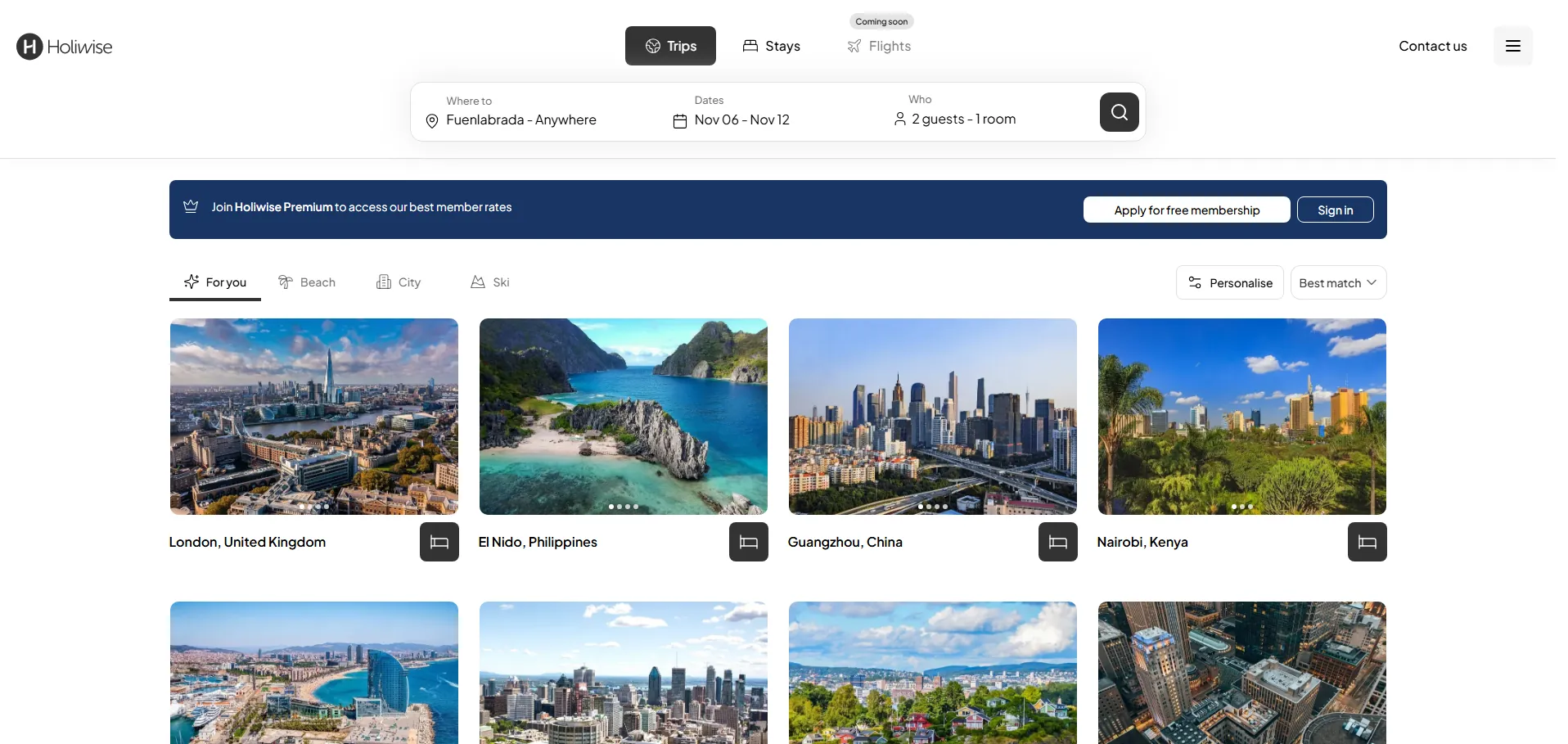 Holiwise es una guía de viajes impulsada por inteligencia artificial que personaliza recomendaciones de destinos según tus gustos, fechas y presupuesto. Con acceso a miles de opciones en playas, ciudades y estaciones de esquí, Holiwise facilita la planificación de tu próxima aventura y la reserva de alojamientos en lugares como Río de Janeiro, Cancún, Maldivas y muchos más. Su motor de IA analiza tus preferencias y crea itinerarios a medida para optimizar cada etapa de tu viaje.