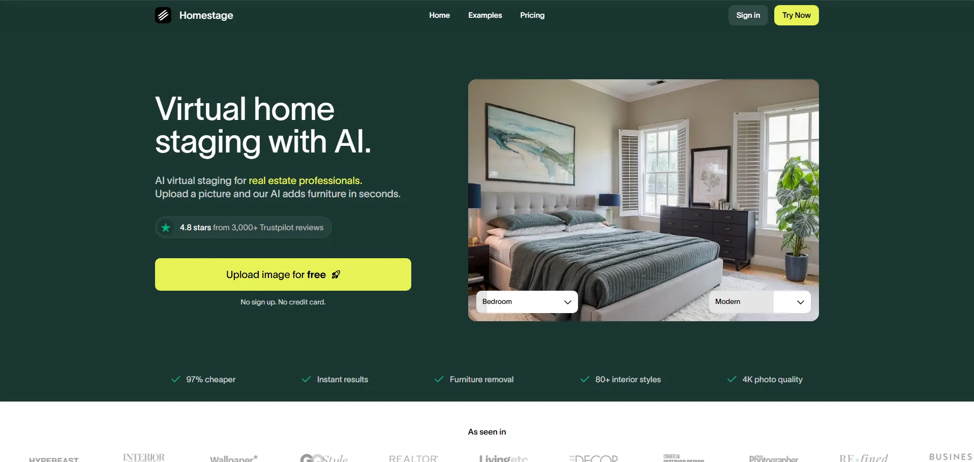 HomeStage es una plataforma de home staging virtual potenciada por inteligencia artificial, diseñada para profesionales inmobiliarios que buscan crear anuncios de alto impacto. Permite transformar fotografías de propiedades en segundos, añadiendo muebles y decoración personalizados con acceso a más de 80 estilos de interior y garantizando resultados en calidad 4K con plena protección de derechos de autor.