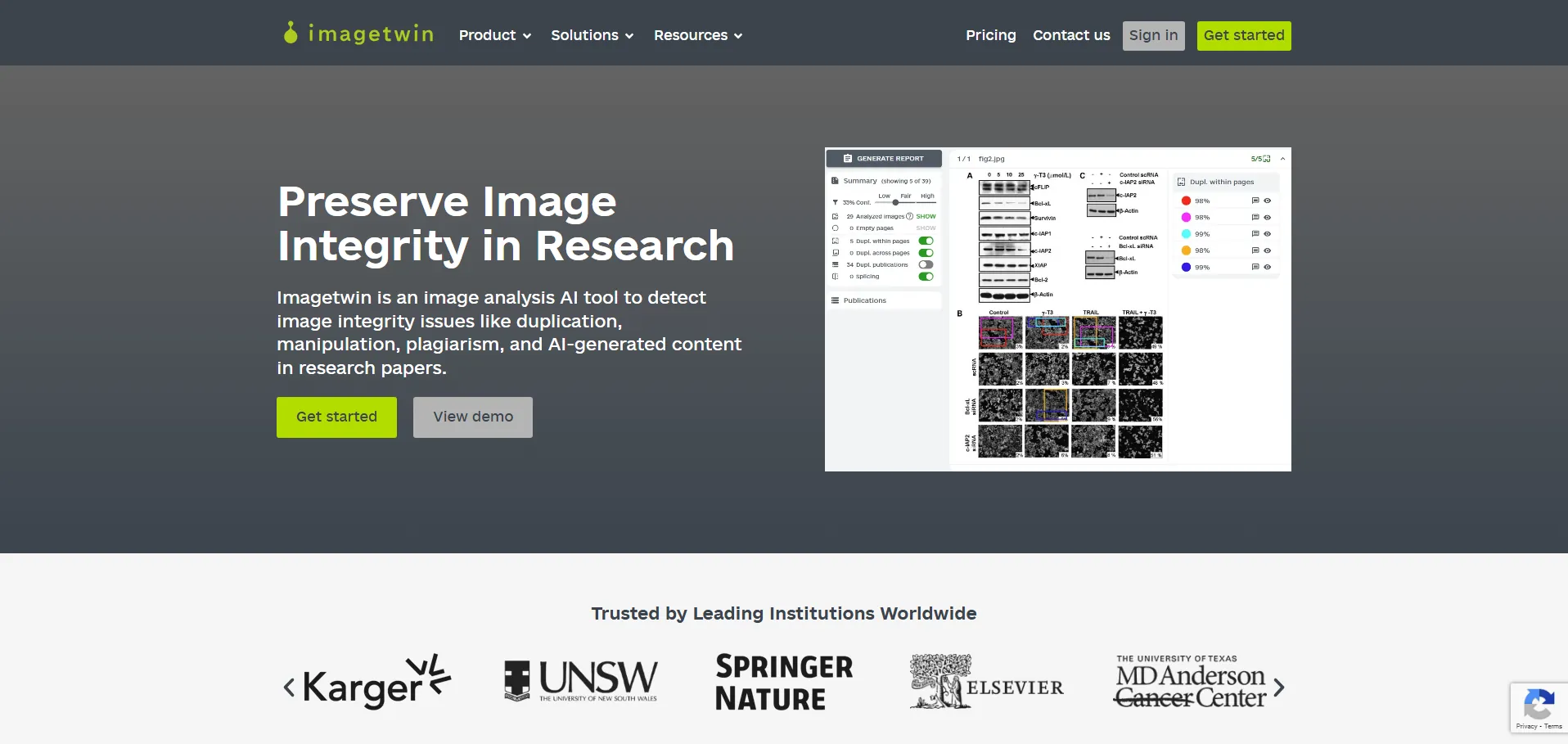 ImageTwin es un software basado en inteligencia artificial diseñado para detectar problemas de integridad en imágenes científicas. Especialmente útil en manuscritos de ciencias de la vida, permite identificar manipulaciones y duplicaciones en figuras como Western blots o imágenes de microscopía.