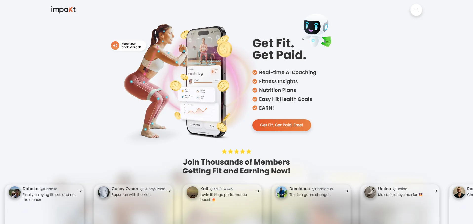 Impakt AI Coach es un entrenador de fitness impulsado por inteligencia artificial que ofrece entrenamientos personalizados y coaching en tiempo real. Su algoritmo analiza tu rendimiento para optimizar rutinas, guiar tus sesiones y ayudarte a mejorar fuerza, resistencia y técnica de manera continua.