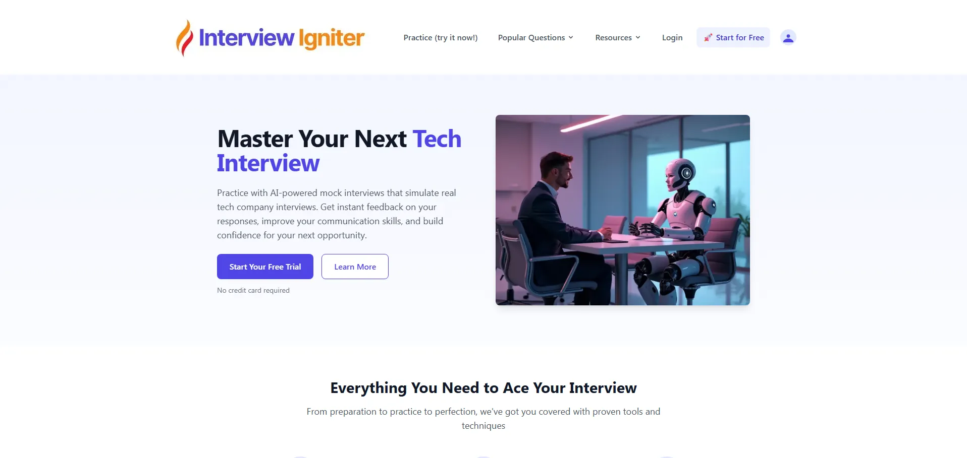 InterviewIgniter es una plataforma de coaching para entrevistas impulsada por inteligencia artificial. Combina un banco de preguntas de comportamiento, simulaciones realistas con entrevistador virtual y feedback personalizado para que los usuarios perfeccionen sus respuestas, ganen confianza y afronten procesos de selección con seguridad. Gracias a avanzados algoritmos de procesamiento de lenguaje natural, recrea escenarios de entrevista adaptados a distintos puestos y sectores, facilitando una preparación integral y efectiva.