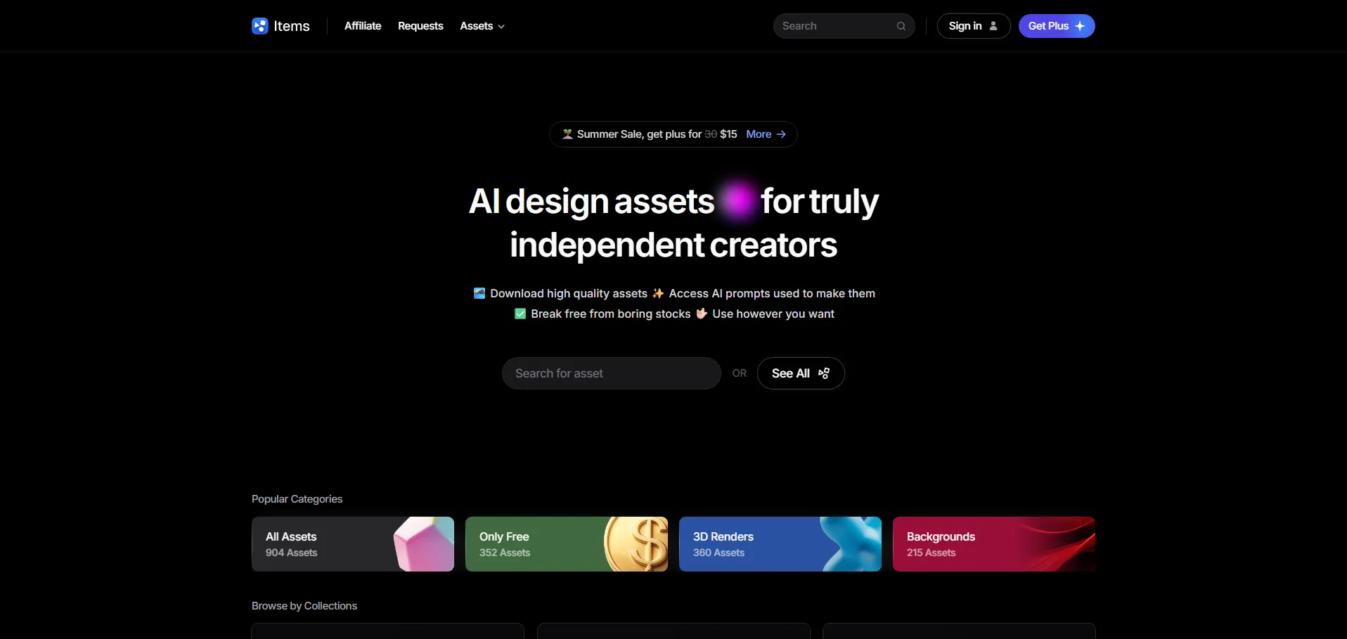 Items Design, también conocido como AI Design Assets, es una plataforma de recursos creativos impulsada por inteligencia artificial que ofrece más de 900 activos de diseño de alta calidad para creadores, diseñadores y profesionales del marketing.
