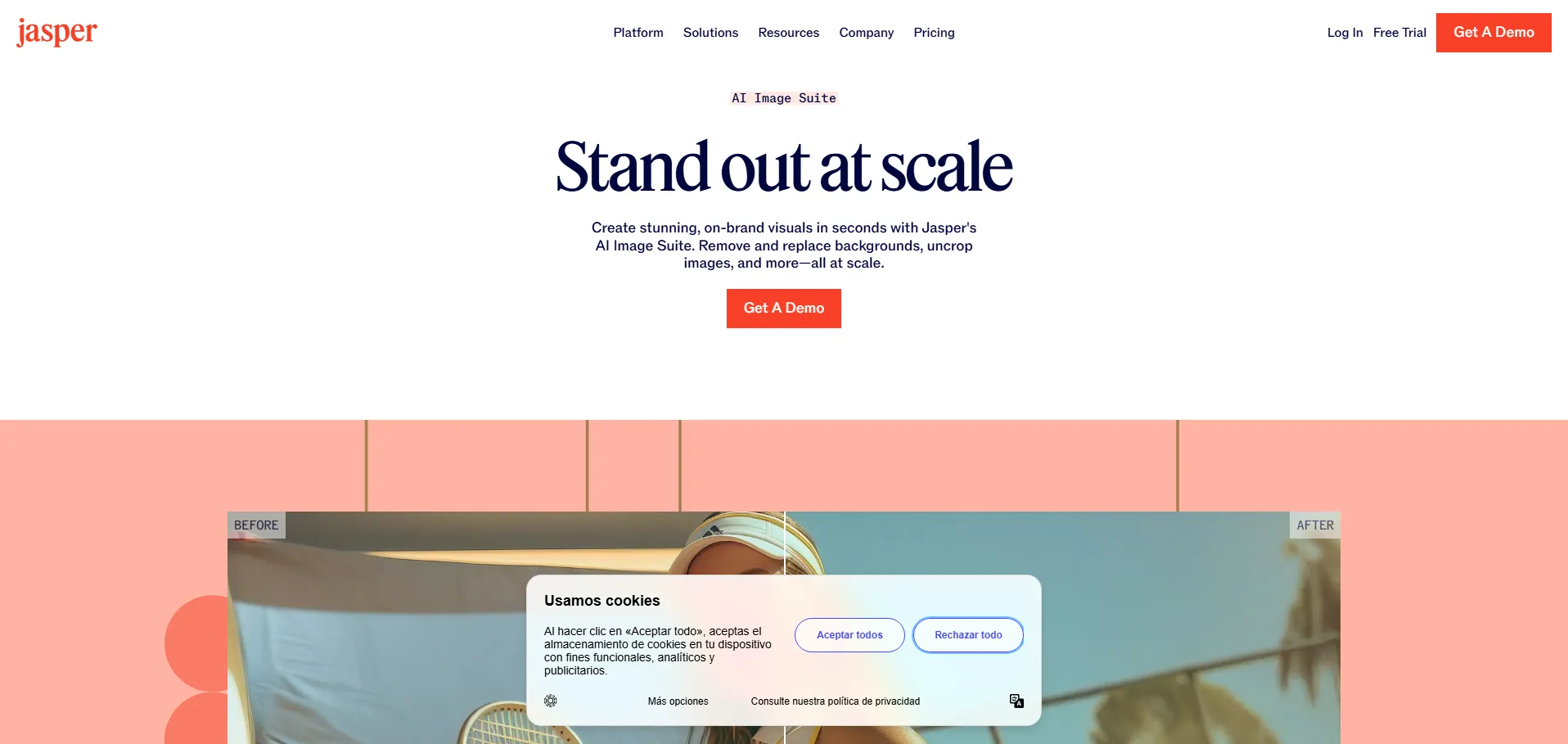 Jasper Art es una herramienta de inteligencia artificial que convierte descripciones textuales en imágenes profesionales de alta calidad. Mediante un sencillo prompt o mediante Jasper Chat, permite ajustar estilo, medio, artista y ambiente para obtener resultados personalizados y libres de derechos. Ideal para redes sociales, blogs, presentaciones y cualquier proyecto que requiera contenido visual atractivo.