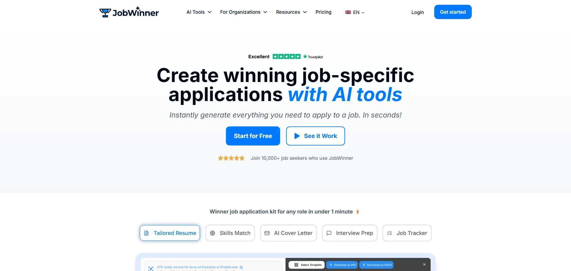 JobWinner AI es un asistente de búsqueda de empleo potenciado por inteligencia artificial que maximiza tus posibilidades de entrevistar. Genera al instante currículums optimizados para ATS, cartas de presentación personalizadas y simulaciones de entrevista adaptadas al puesto. Con análisis de compatibilidad de habilidades y gestión centralizada de solicitudes, acelera tu proceso de candidatura y mejora tu visibilidad ante reclutadores.