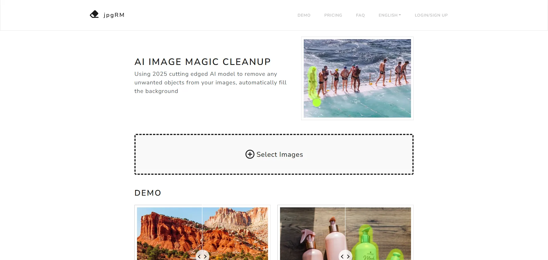 jpgRM es un editor de imágenes potenciado por IA que elimina automáticamente objetos no deseados de tus fotografías y rellena el fondo con precisión. Gracias a su modelo de inteligencia artificial de última generación, podrás borrar logos, marcas de agua, multitudes y elementos indeseados de paisajes o productos en unos clics. Con opciones gratuitas y suscripción VIP para descargas en alta resolución, jpgRM facilita la edición rápida y profesional sin necesidad de dominar complejos programas de retoque.