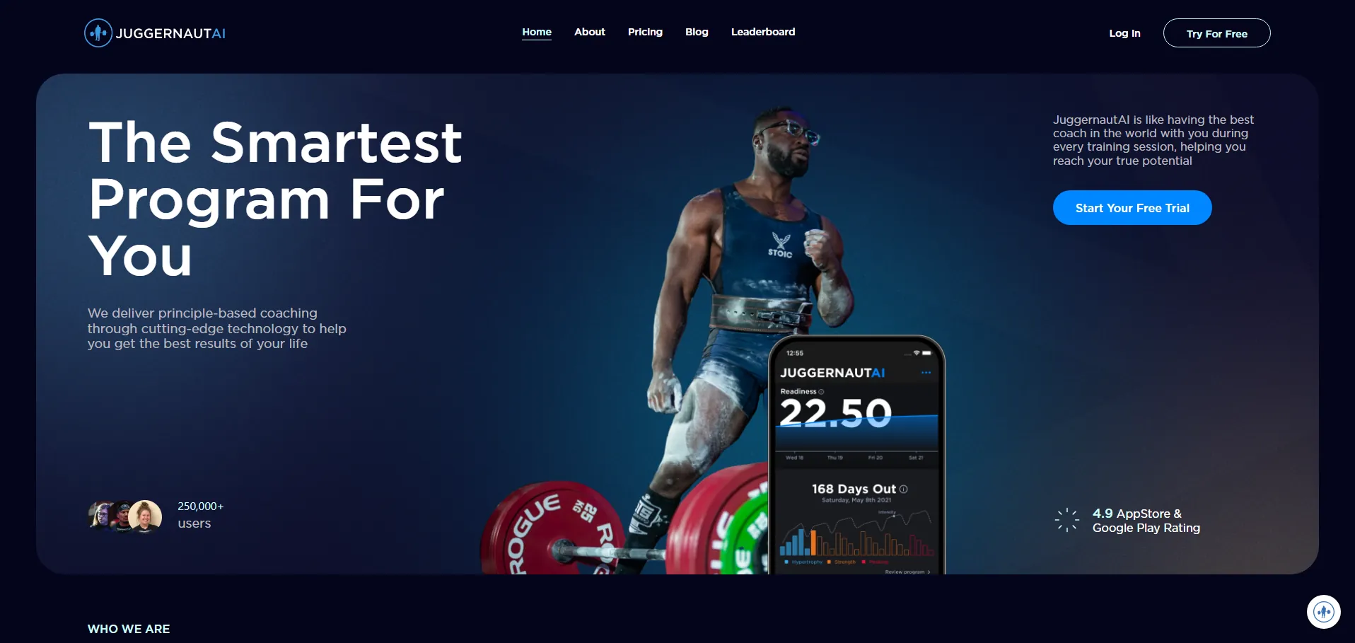 JuggernautAI es una app especializada diseñada para ofrecer programas de entrenamiento individualizados para powerlifting y powerbuilding. La plataforma adapta planes según objetivos personales (edad, sexo, nivel de experiencia) y ajusta frecuencia e intensidad basándose en los comentarios del usuario. Con más de 300 vídeos de ejercicios detallados, consejos de entrenamiento, planificadores de calentamiento y calculadoras de RPE, JuggernautAI optimiza cada bloque para lograr resultados óptimos.