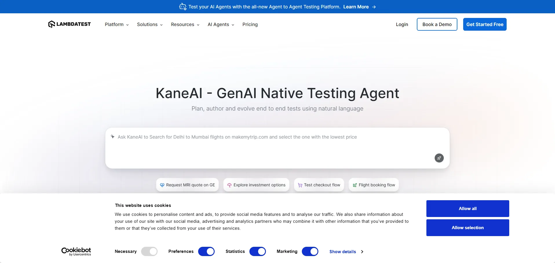 Página oficial de KaneAI de LambdaTest