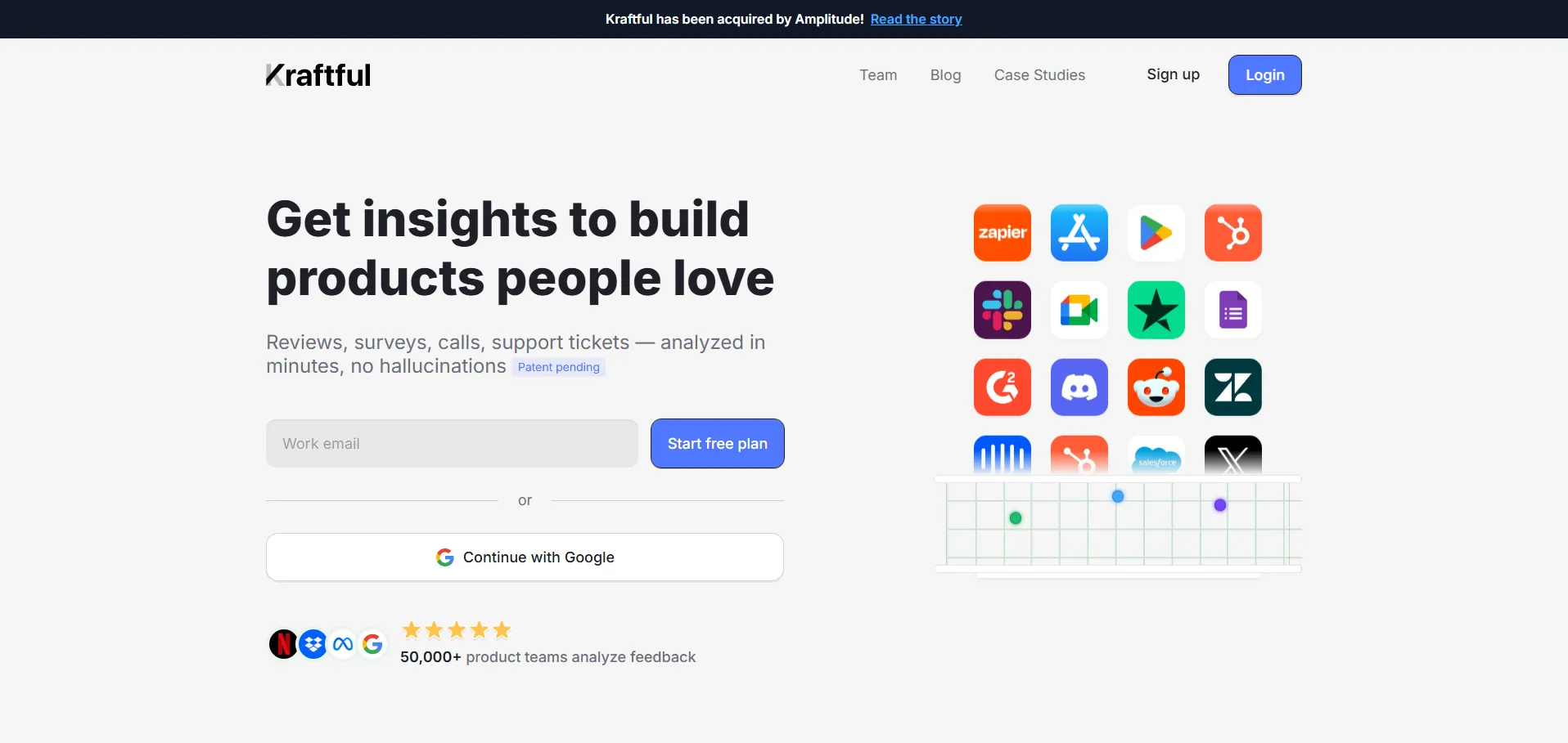 Kraftful es una plataforma de inteligencia artificial que emplea GPT-3 para analizar la opinión de los usuarios, identificar sus necesidades y monitorizar la percepción de tu producto a lo largo del tiempo. Incorpora análisis competitivo para anticipar tendencias del sector y ayuda a equipos de producto y ejecutivos a alcanzar la adecuación producto-mercado mediante insights basados en datos. Además, ofrece una versión beta de su herramienta de investigación conversacional para profundizar en el feedback de los clientes.