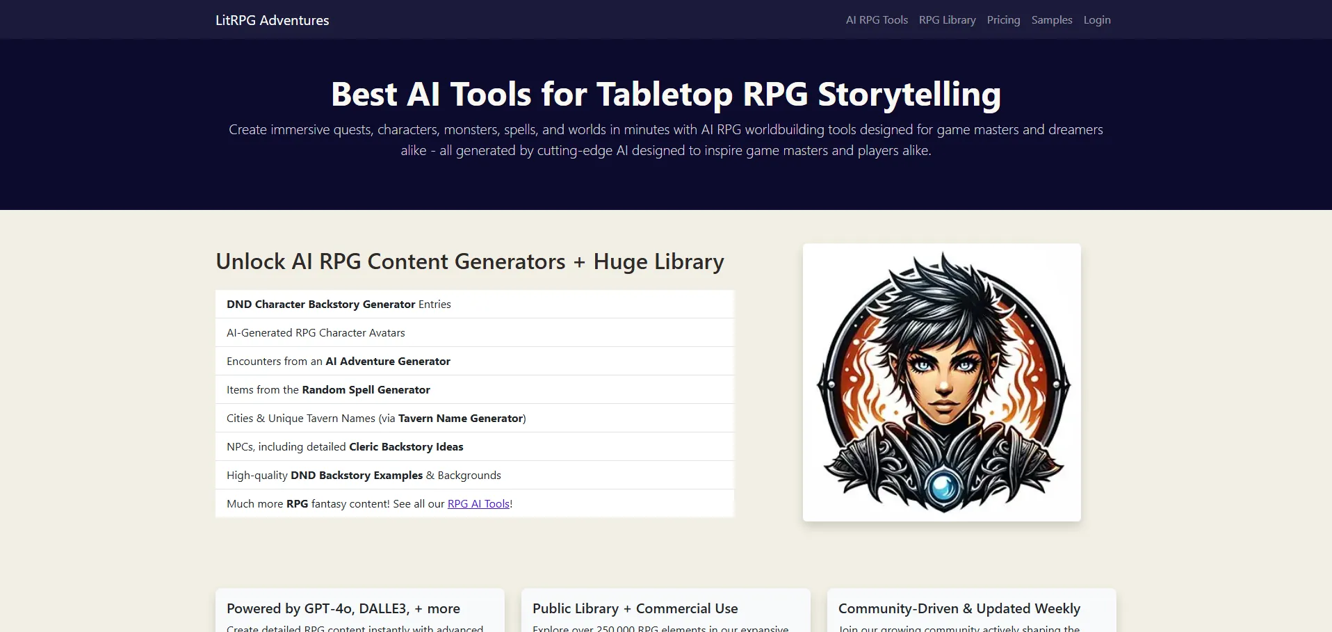 LitRPG Adventures es una plataforma de creación de contenido para juegos de rol de mesa potenciada por inteligencia artificial. Con una biblioteca de más de 42 000 recursos, permite generar mazmorras, monstruos, hechizos, tiendas mágicas y narrativas personalizadas mediante tecnología GPT-3.5 y DALL-E2. Los usuarios pueden acceder a generadores avanzados, compartir sus propias creaciones en la comunidad y optimizar sus campañas de RPG de forma inmediata.