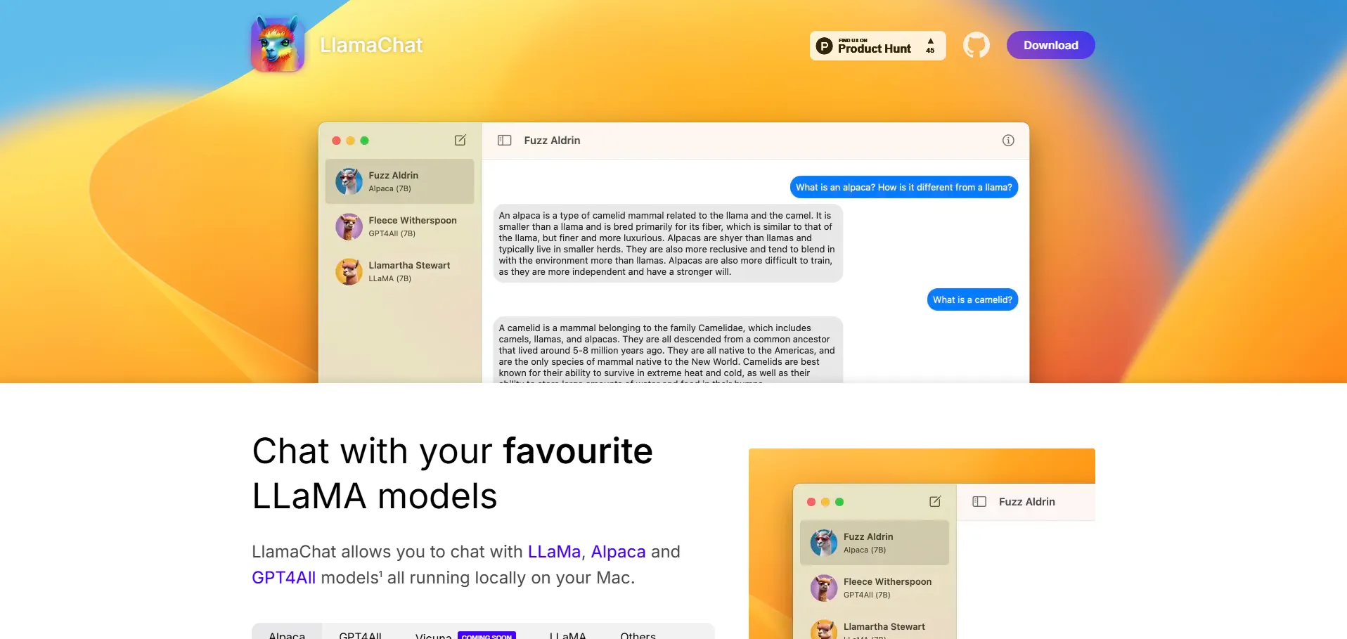 LlamaChat es una herramienta de inteligencia artificial de código abierto que permite chatear localmente en Mac con modelos de lenguaje como llama, alpaca y GPT-4. Aprovecha librerías como llama.cpp y llama.swift para ejecutar y convertir checkpoints de PyTorch y archivos .ggml preconvertidos, ofreciendo privacidad, rendimiento optimizado y flexibilidad sin depender de servicios en la nube.