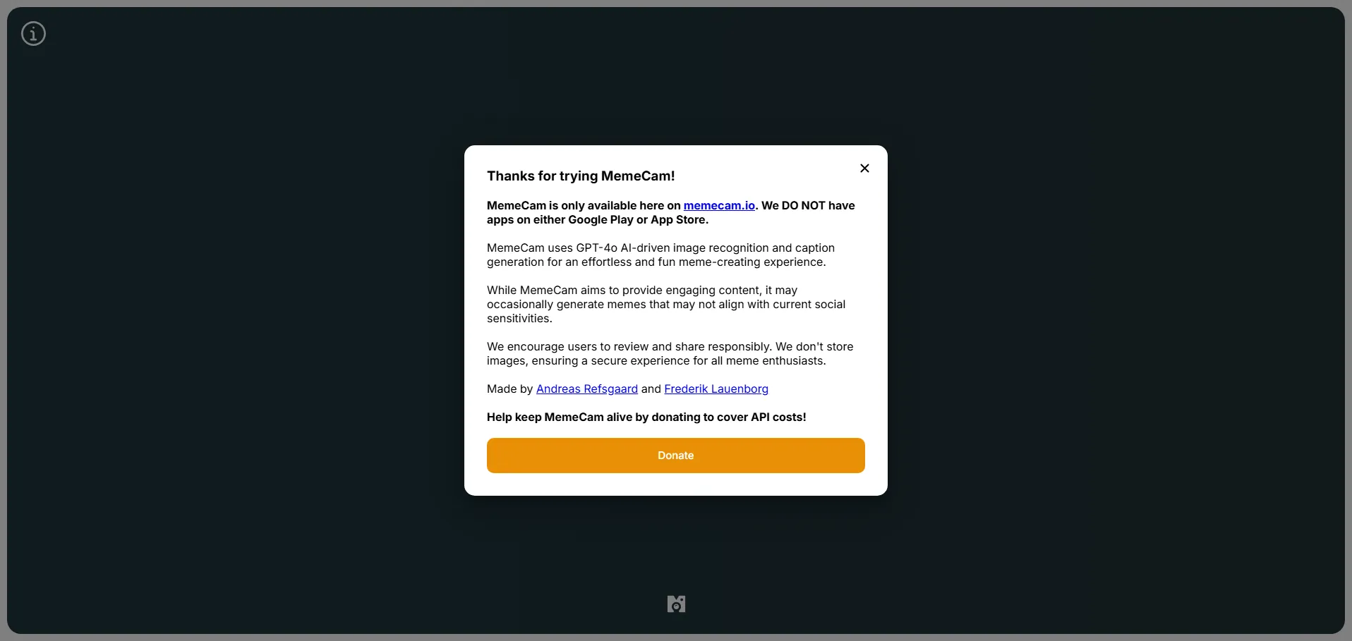 MemeCam es una plataforma de creación de memes impulsada por inteligencia artificial que facilita la generación de contenido humorístico en cuestión de segundos. Gracias a su avanzado reconocimiento de imágenes y a la generación de subtítulos con IA GPT-3.5, convierte cualquier foto en un meme divertido sin necesidad de editar manualmente. No almacena tus imágenes, garantizando la privacidad de tus datos, y permite compartir o descargar tus creaciones al instante. Disponible en memecam.io, Google Play Store y App Store, MemeCam es ideal tanto para entretenimiento personal como para potenciar estrategias de marketing digital.