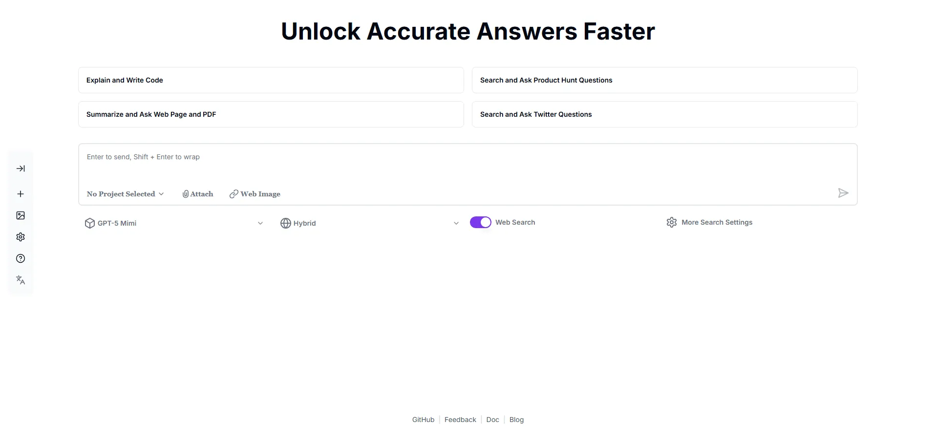 MemFree es una herramienta de búsqueda híbrida potenciada por inteligencia artificial que ofrece respuestas instantáneas y precisas desde internet, marcadores, notas y documentos locales. Su avanzada indexación basada en GPT-3.5 y GPT-4o garantiza resultados rápidos y relevantes. Al ser de código abierto y autoalojable, permite mantener la privacidad de tus datos al buscar en tu propio servidor de forma gratuita.