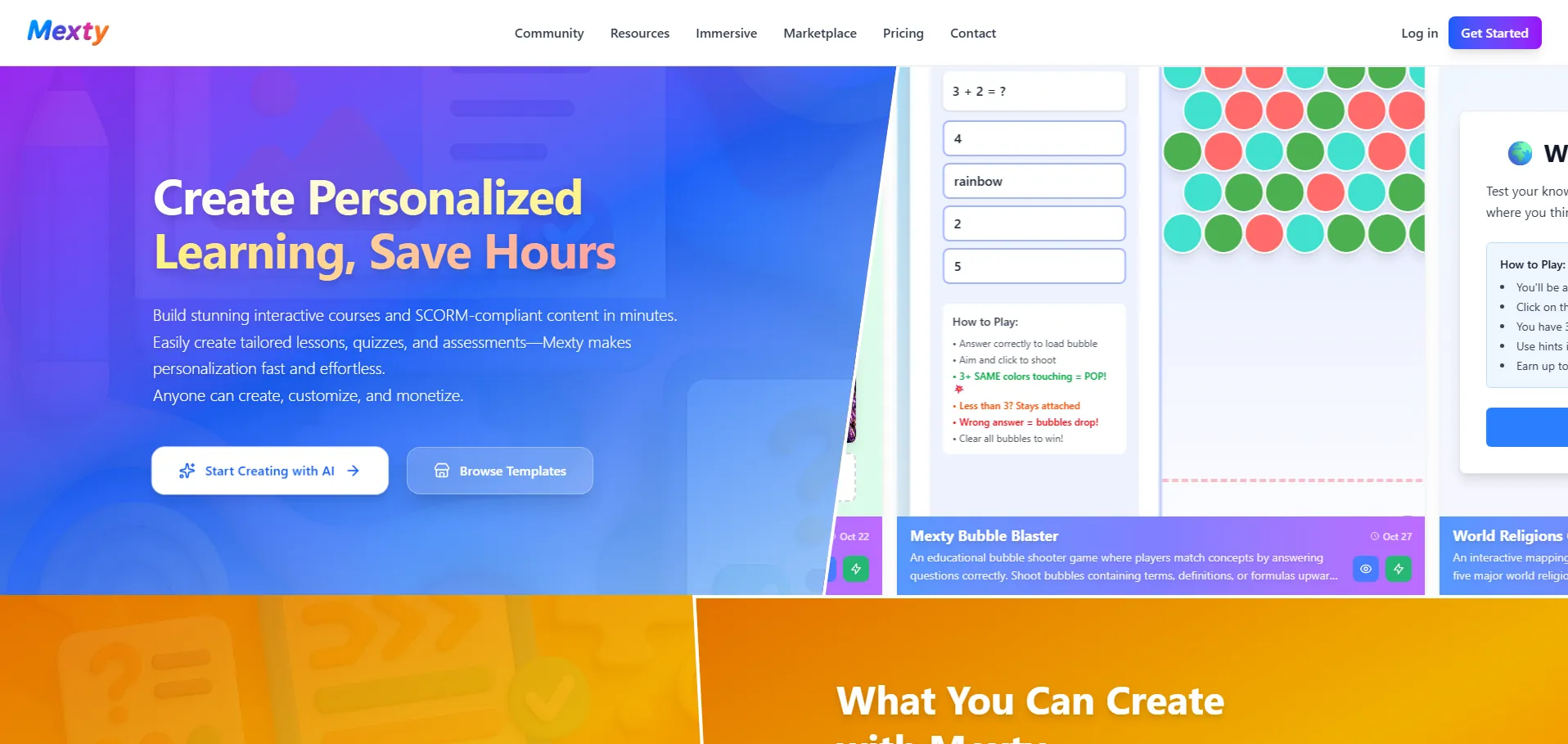 Mexty es una plataforma de creación de contenido educativo impulsada por inteligencia artificial que simplifica y acelera el diseño instruccional. Permite a educadores y formadores generar lecciones, cuestionarios y cursos compatibles con SCORM en minutos, sin necesidad de codificación. Con una interfaz de arrastrar y soltar, Mexty integra generación de contenido asistida por IA, plantillas personalizables y herramientas de automatización para adaptar experiencias de aprendizaje a diferentes estilos y niveles. Además, soporta microaprendizaje, elementos gamificados y entornos 3D inmersivos a través de su complemento Mext.app, facilitando la exportación de paquetes SCORM a los principales LMS.