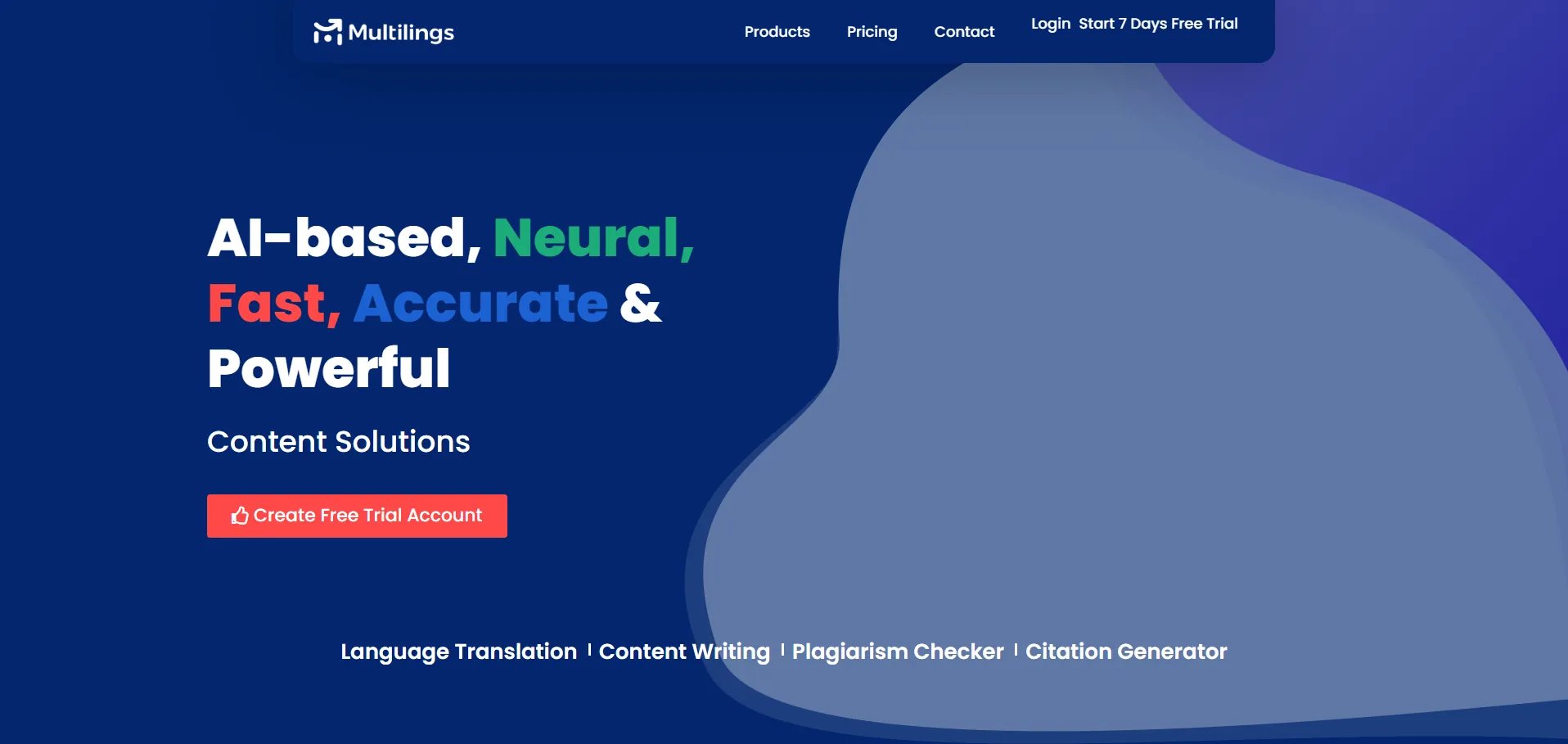 Multilings es una plataforma de creación y gestión de contenido impulsada por inteligencia artificial. Permite generar artículos, ensayos y descripciones de comercio electrónico optimizados para SEO, con corrección gramatical y detección de plagio integradas. Su formateador de citas en estilos APA, MLA y Chicago agiliza el trabajo académico, y la traducción en más de 75 idiomas, incluso de archivos de audio, facilita la expansión global. Gracias a sus algoritmos de aprendizaje automático, ofrece resultados precisos y flujos de trabajo eficientes para redactores, investigadores y equipos de marketing.