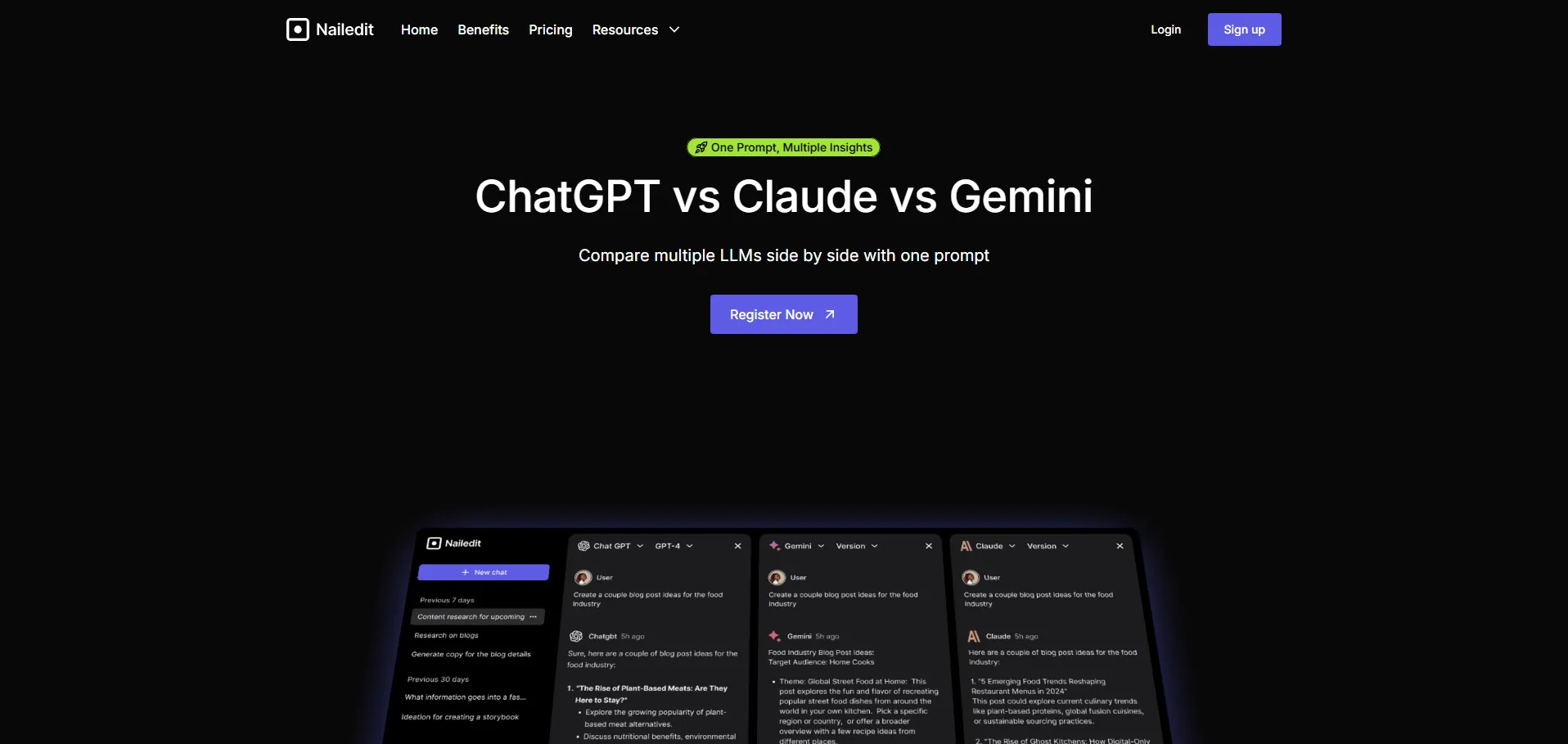NailEdit.ai es una plataforma comparativa de modelos lingüísticos impulsada por IA que permite evaluar al instante sistemas como ChatGPT, Claude y Gemini. Con una sola solicitud, los usuarios reciben respuestas en paralelo de varios LLM, agilizando la comparación y selección de resultados. Esta herramienta optimiza la productividad y los flujos de trabajo, ofreciendo acceso unificado a los modelos de lenguaje más recientes y facilitando tanto el uso individual como la colaboración en equipo para estrategias de contenido e investigación.