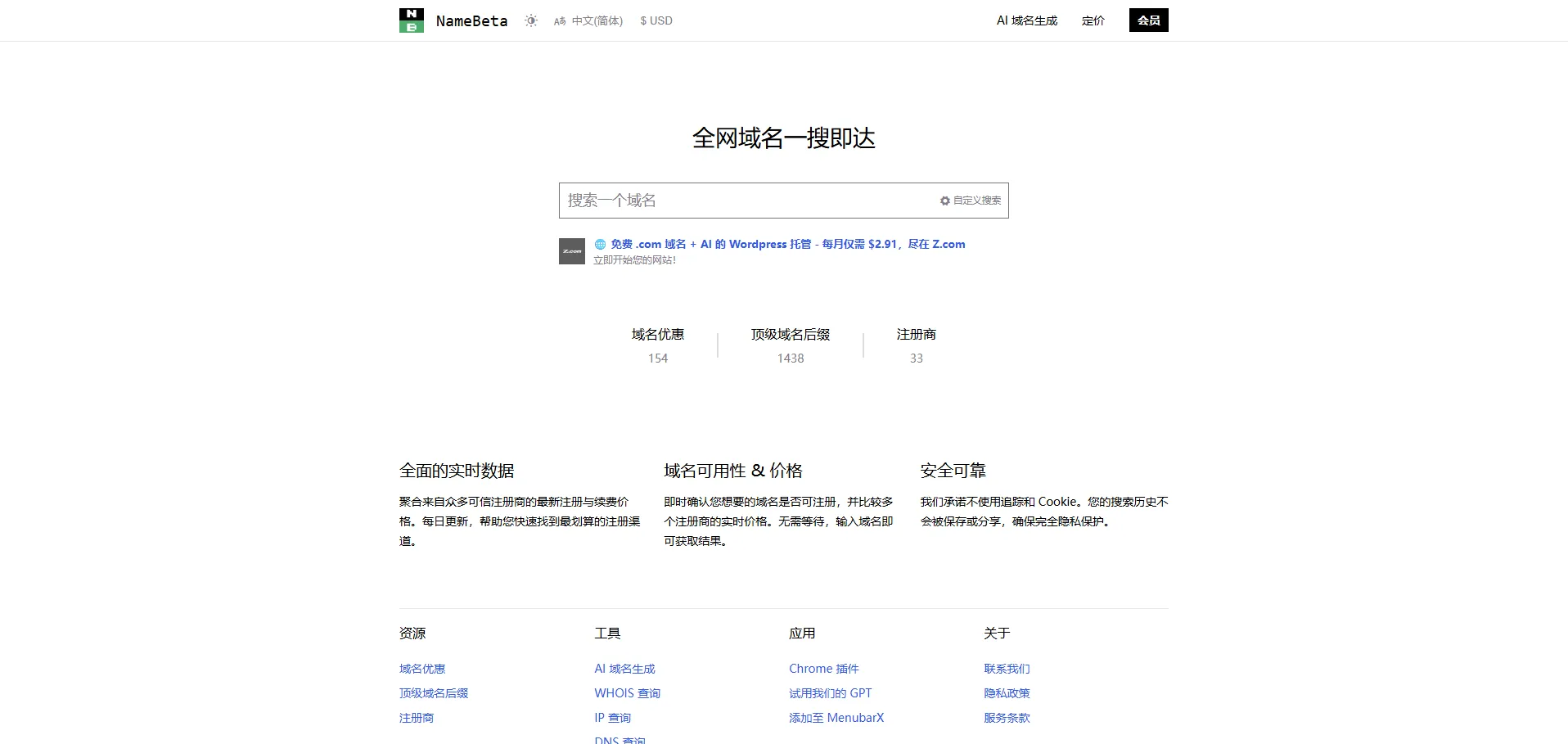 NameBeta es una plataforma de inteligencia artificial dedicada a optimizar la búsqueda, generación y gestión de nombres de dominio. Con potentes algoritmos de IA, facilita la exploración de extensiones, la detección de disponibilidad y el registro ágil de dominios. Además, integra consultas WHOIS y análisis de registros DNS, y ofrece un panel de promociones actualizado para que encuentres ofertas de registradores y dominios de nivel superior en tiempo real.