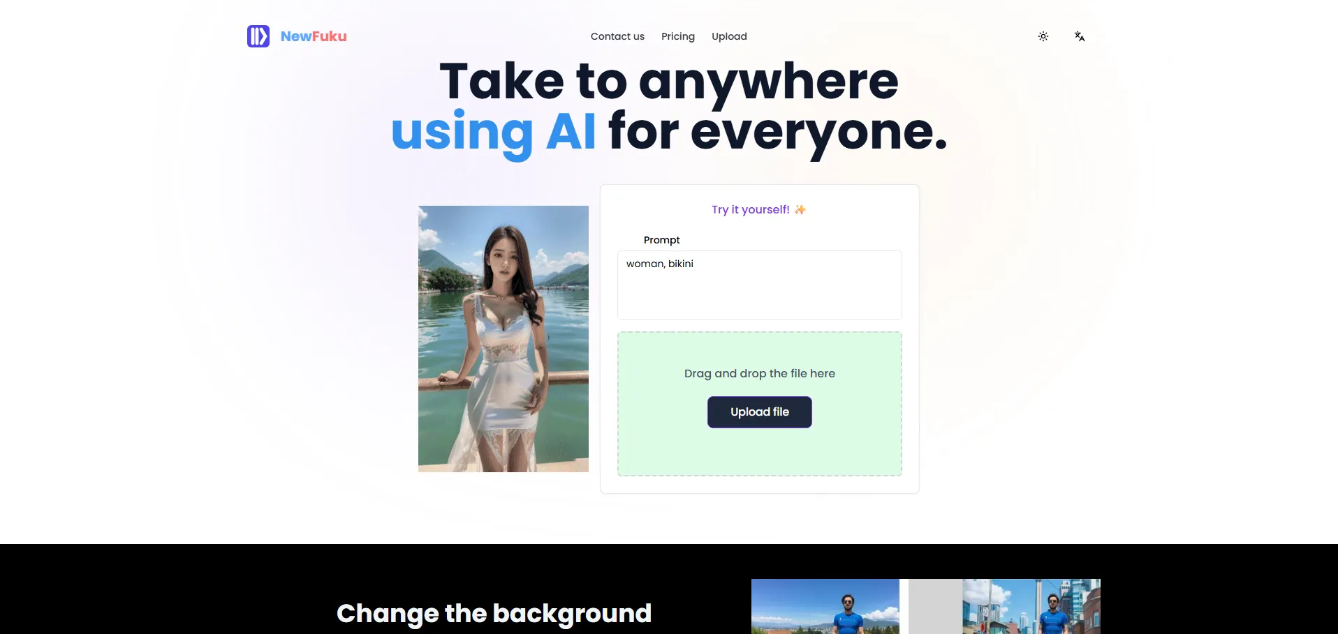 NewFuku es una herramienta de IA avanzada que permite cambiar el fondo de tus fotografías y eliminar objetos no deseados en cuestión de segundos. Su motor de inteligencia artificial analiza cada imagen, detecta elementos como ropa u otros objetos y genera un nuevo fondo con precisión, manteniendo la iluminación, la perspectiva y las proporciones originales. Con una interfaz sencilla y sin necesidad de conocimientos técnicos, basta con subir tu foto, describir el escenario deseado y dejar que la IA haga el resto.
