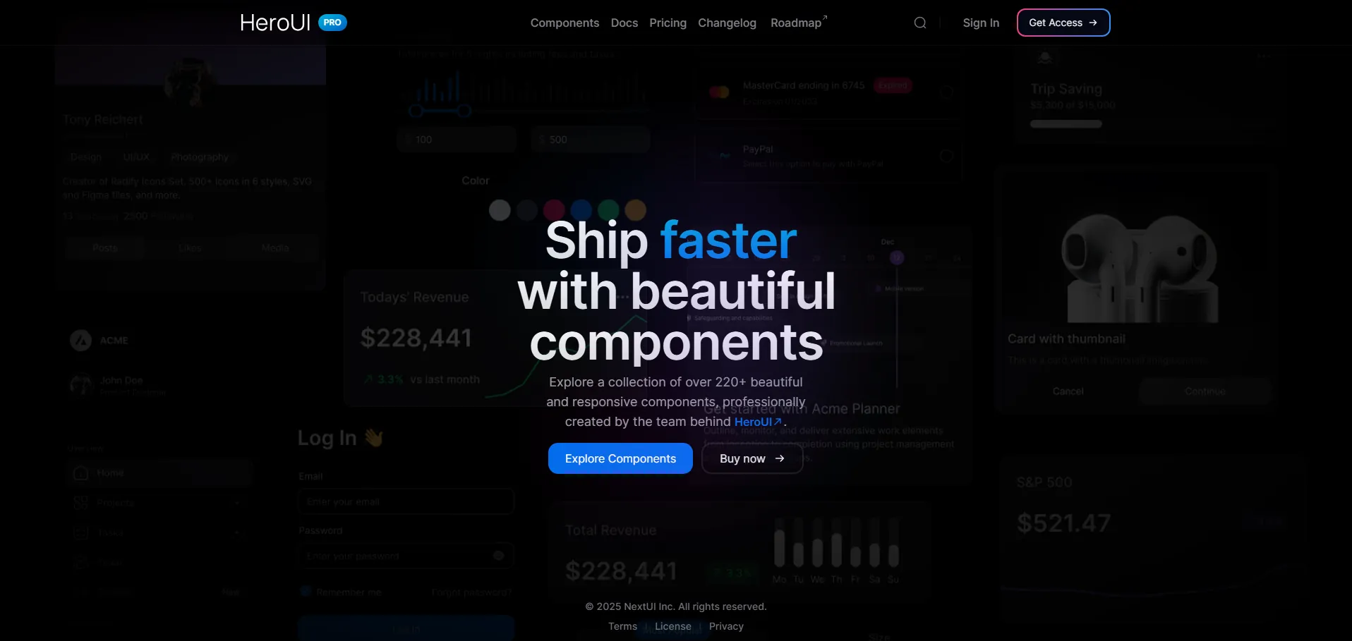 NextUI Pro es una biblioteca de componentes React de alto rendimiento, diseñada para acelerar el desarrollo de interfaces web modernas. Con más de 188 elementos responsivos y un sistema de diseño sólido, proporciona piezas listas para usar que garantizan coherencia visual y excelente experiencia de usuario. Su documentación detallada y la integración nativa con Next.js permiten a equipos y desarrolladores individuales optimizar flujos de trabajo, reducir tiempos de implementación y mantener un estilo uniforme en múltiples dispositivos.