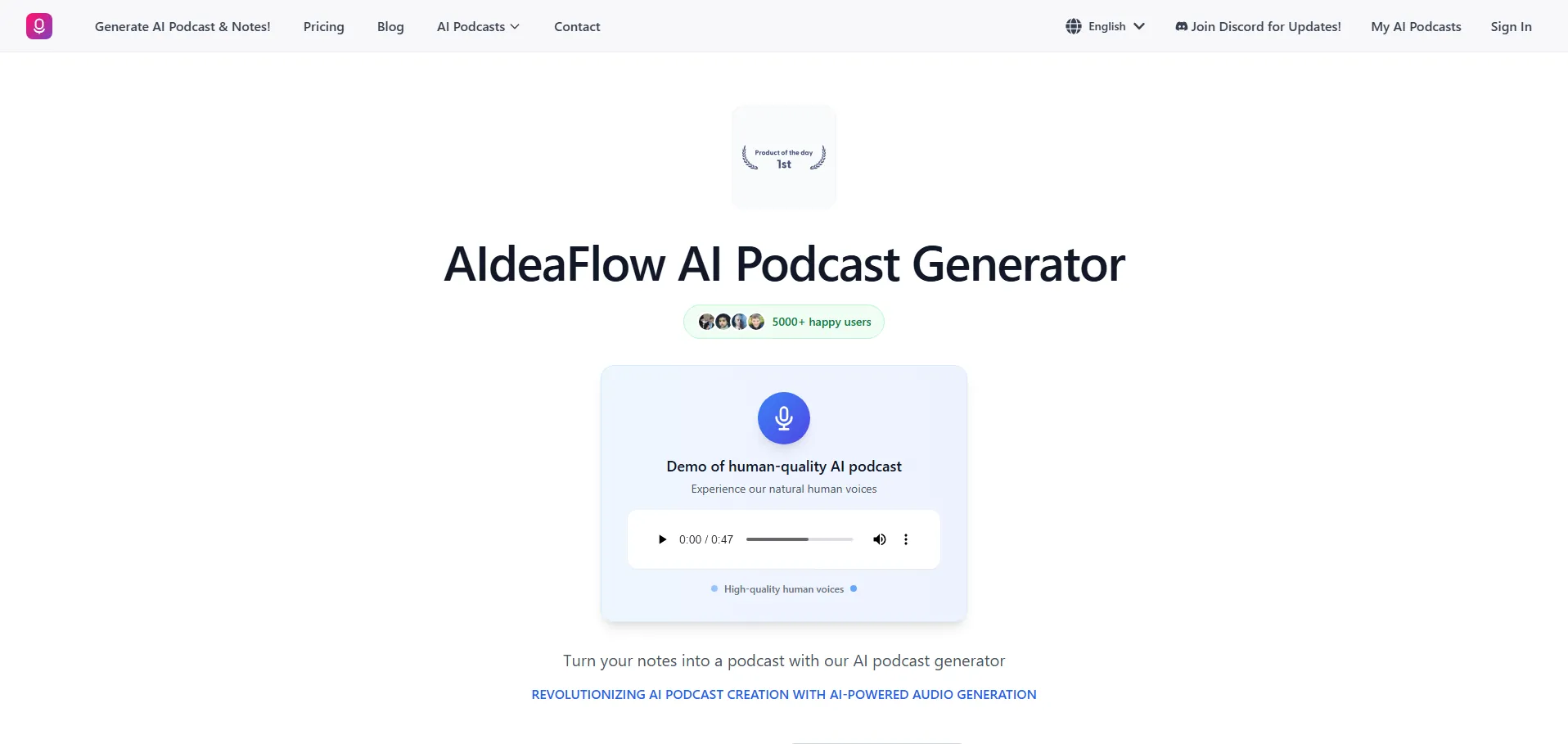 NotebookAI Podcast es un generador de podcasts con IA que convierte texto en contenido de audio profesional en cuestión de segundos. Con más de 120 voces multilingües y modelos de IA avanzados, permite crear podcasts, audiolibros y materiales educativos de alta calidad. Los usuarios pueden introducir texto directamente, subir documentos o usar la lectura de guiones para obtener resultados fluidos. Además, ofrece opciones de audio en calidad estándar o mejorada y un asistente de chat inteligente que optimiza guiones y explora temas en tiempo real, manteniendo patrones de habla naturales y matices culturales.