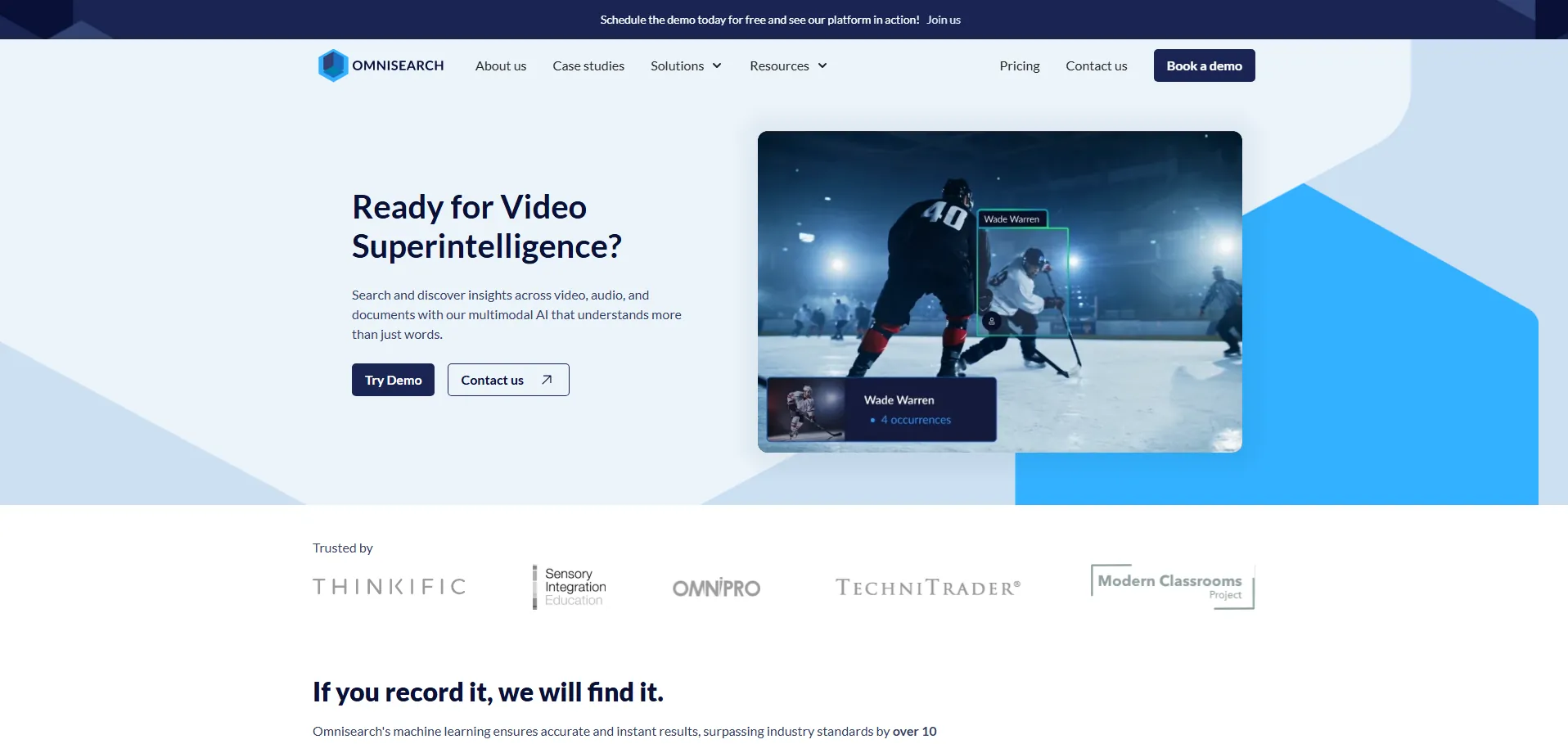 Omnisearch es una plataforma de búsqueda e indexación multimedia en la nube que emplea aprendizaje automático y algoritmos avanzados para facilitar la localización rápida de archivos de vídeo, audio e imágenes. Con funciones como conversión automática de voz a texto, reconocimiento facial y detección de objetos, Omnisearch optimiza la organización de recursos en directo y archivados, mejorando la eficiencia de los flujos de trabajo y garantizando resultados precisos al instante. Su arquitectura escalable y capacidades de marca blanca permiten integraciones seguras en sistemas de CCTV y soluciones empresariales.