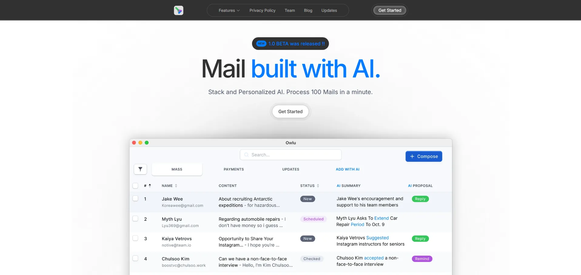 OwlU es una herramienta de gestión de correo electrónico impulsada por IA, diseñada para equipos de seguridad y profesionales que manejan grandes volúmenes de correspondencia. Permite procesar hasta 100 correos por minuto, leer, resumir y sugerir respuestas de forma eficiente. Incorpora perfiles de IA personalizables que se ajustan según el historial de mensajes, una función de resumen inteligente para recuperar información rápidamente, y un sistema de tres propuestas para crear y compartir respuestas o documentos. Además, cuenta con alertas automatizadas para asuntos urgentes y un panel de control intuitivo que facilita auditorías SEO complejas con un solo clic.