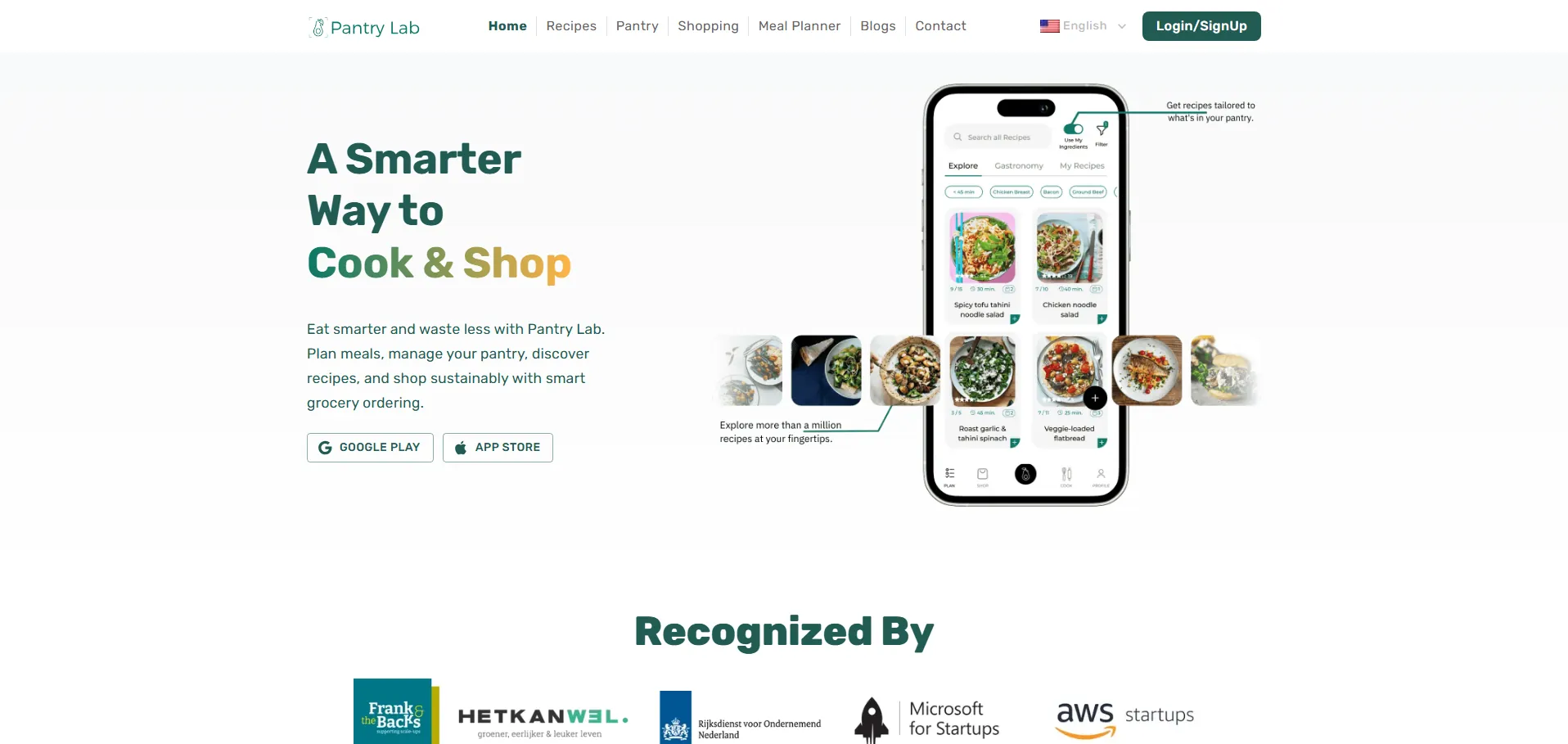 La aplicación está disponible para Android e iOS. Visita el sitio oficial de PantryLab para registrarte, acceder a la base de datos de recetas, consultar la documentación y recibir soporte técnico.