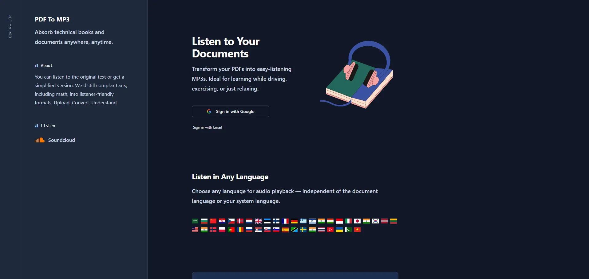 Visita el sitio oficial de PDF a MP3 para acceder a la plataforma web y a las aplicaciones móviles. Consulta guías de uso, preguntas frecuentes y soporte técnico para sacar el máximo partido a todas sus funcionalidades.