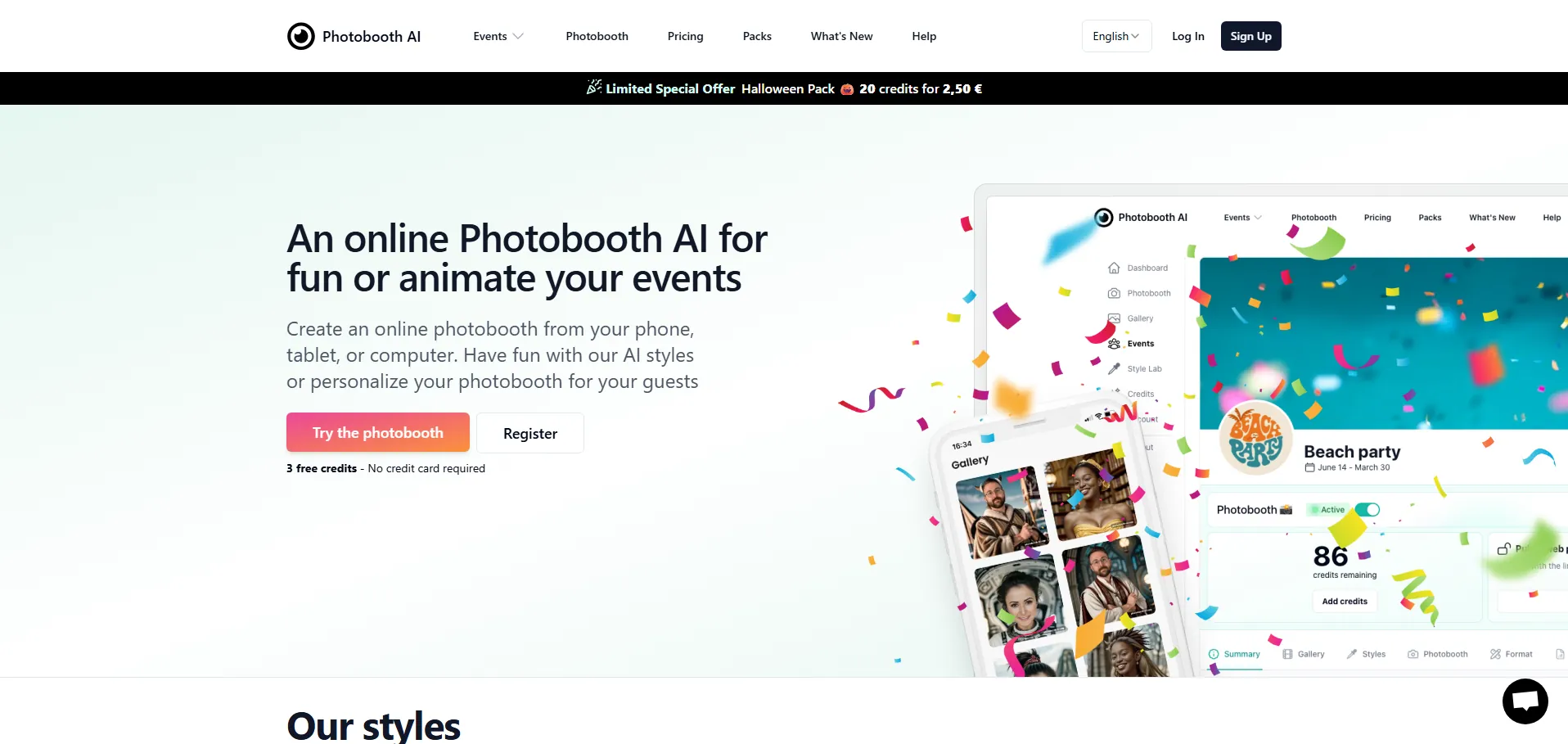 📌 Plan para eventos: 20 € por 100 créditos, ideal para celebraciones de corta duración.