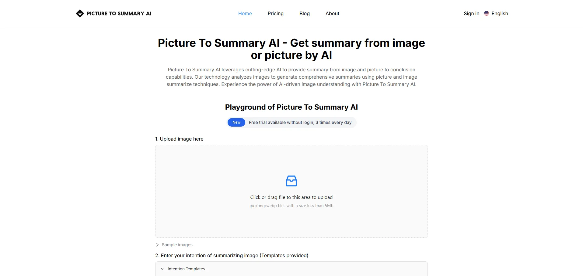 Picture To Summary AI es una herramienta de inteligencia artificial que analiza imágenes y genera resúmenes detallados para facilitar la comprensión de contenido visual. Permite subir archivos JPG o PNG y, mediante indicaciones configurables, crea descripciones personalizadas, extrae texto y produce subtítulos precisos. Su interfaz intuitiva acelera la organización de imágenes, optimiza la accesibilidad y ayuda a profesionales de marketing, educadores y fotógrafos a interpretar rápidamente el material gráfico.