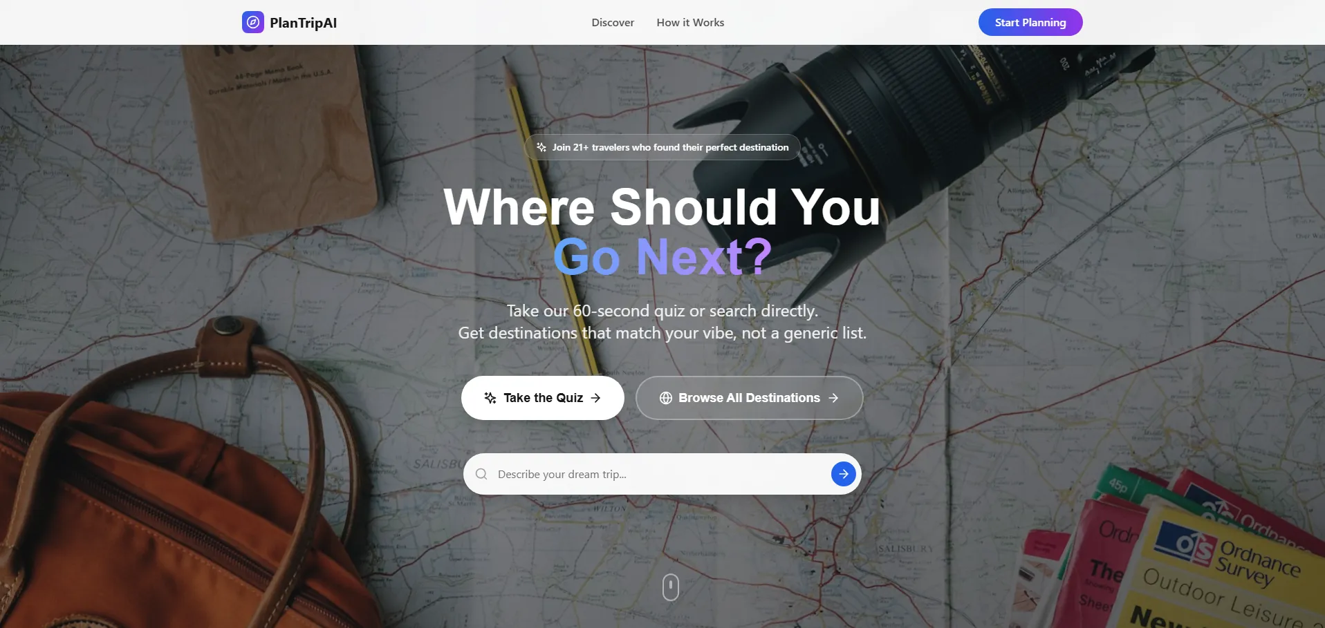 PlanTripAI es una plataforma de planificación de viajes impulsada por inteligencia artificial que crea itinerarios personalizados en cuestión de segundos. A través de un cuestionario sobre destino, estilo de viaje, intereses y presupuesto, genera rutas detalladas, recomendaciones de alojamientos, actividades y restaurantes. Su amplia biblioteca de ciudades y guías permite previsualizar y descargar el plan en formatos PDF, Excel o móvil, facilitando la organización de viajes de ocio o negocio.