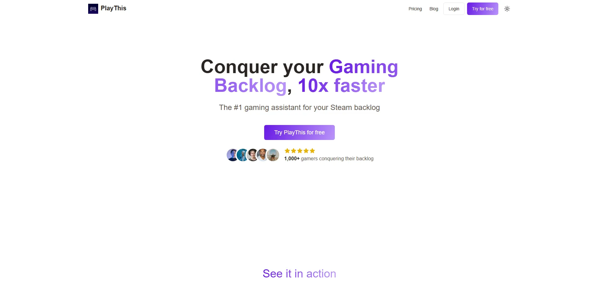 PlayThis es una herramienta diseñada para optimizar tu lista de juegos pendientes mediante recomendaciones de títulos imprescindibles basadas en algoritmos avanzados y tus preferencias de estilo de juego. Al integrarse con tu biblioteca de Steam, ofrece acceso completo a tu lista de pendientes, información rápida sobre ofertas de la lista de deseos y sugerencias de juegos basadas en IA, así como opciones avanzadas de búsqueda y ordenación para maximizar tu tiempo de juego.