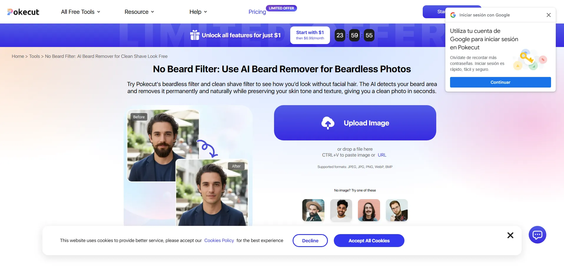 Nota : Los precios están sujetos a cambios. Consulta siempre la información actualizada directamente en el sitio oficial de Pokecut AI Beard Remover