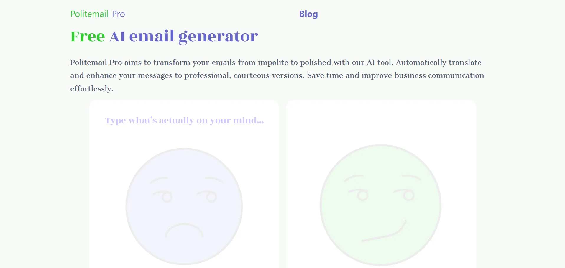 PoliteMail Pro es un generador inteligente de correos electrónicos potenciado por IA, diseñado para elevar la profesionalidad y eficacia de la comunicación empresarial. Con su avanzada corrección lingüística y ajuste automático de tono, permite convertir mensajes informales o abruptos en textos refinados y respetuosos en minutos. Su interfaz intuitiva y opciones multilingües aseguran una experiencia fluida que optimiza el tiempo y refuerza la imagen corporativa en cada envío.